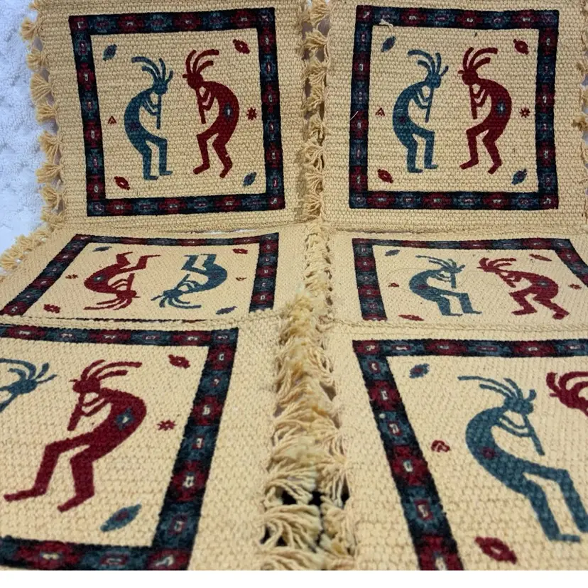 100% cotton. In great vintage condition. 72” by 13”. Placemats are approximately 6” by 7”. Please review photos.