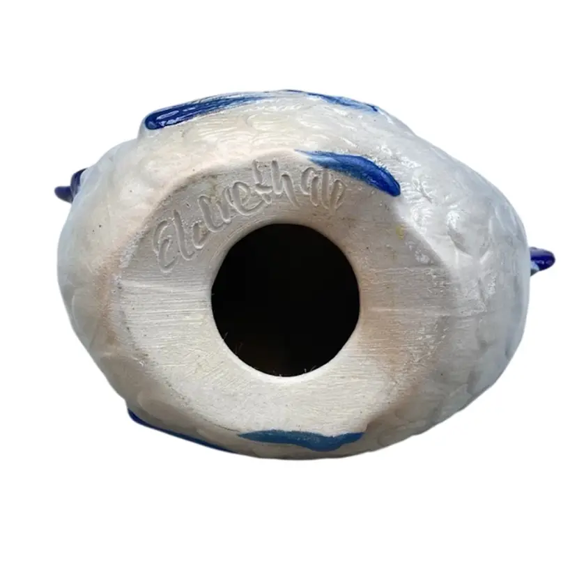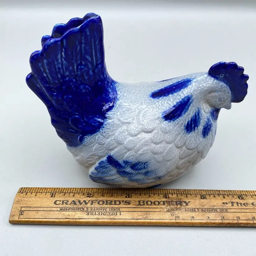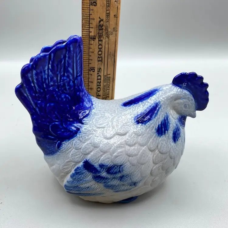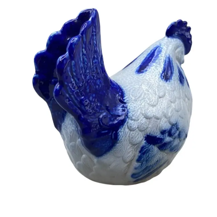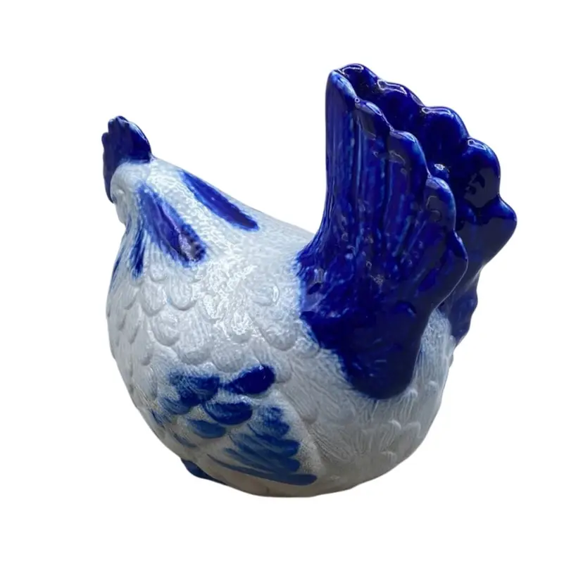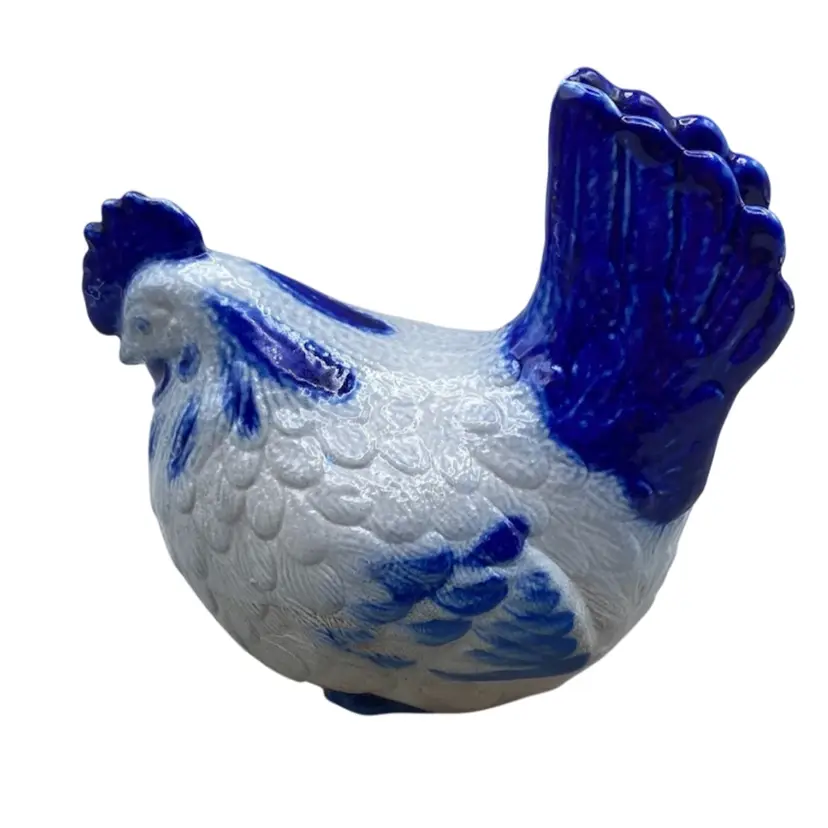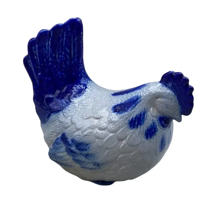 Vintage Eldreth Pottery Chicken 1996 Signed Salt Glaze Blue Rustic