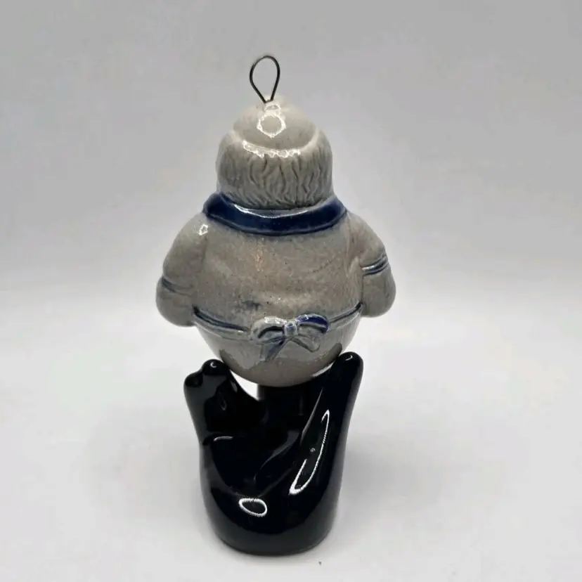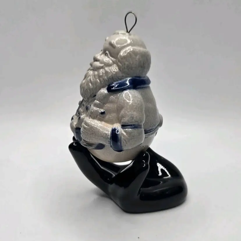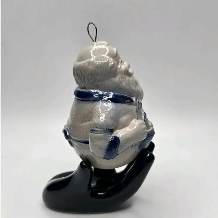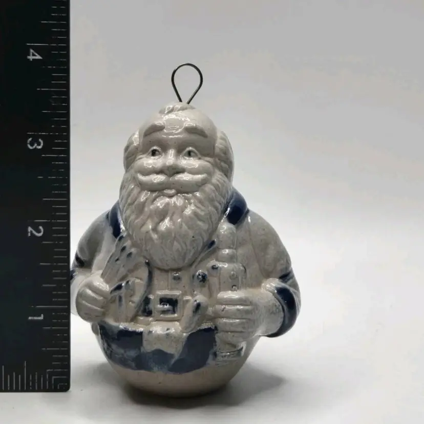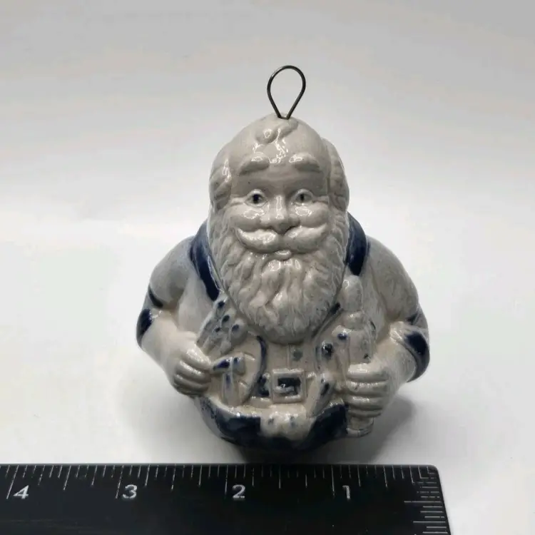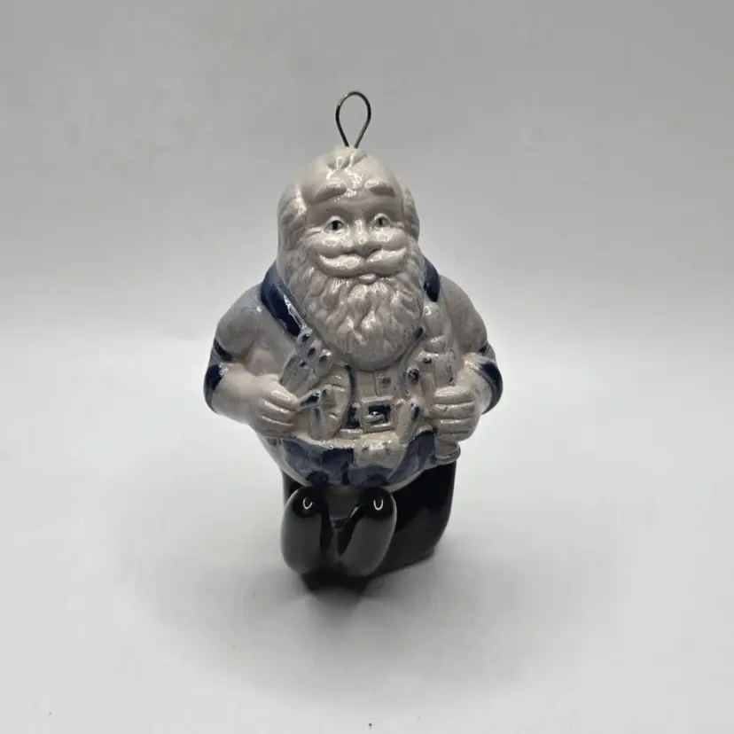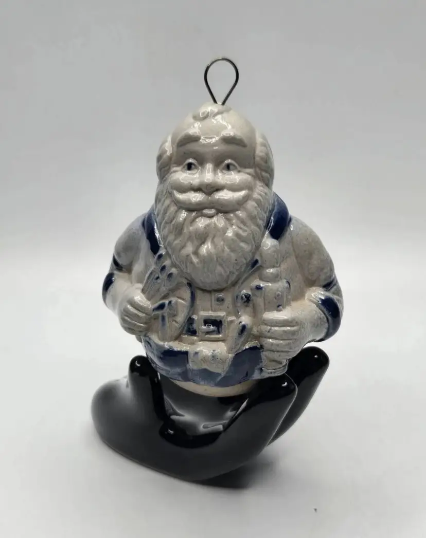 Vintage Eldreth Santa/Paintbrushes Ornament Salt Glazed Pottery Christmas 3.75"H