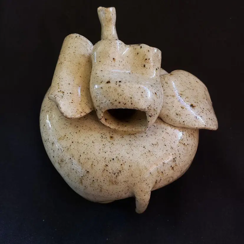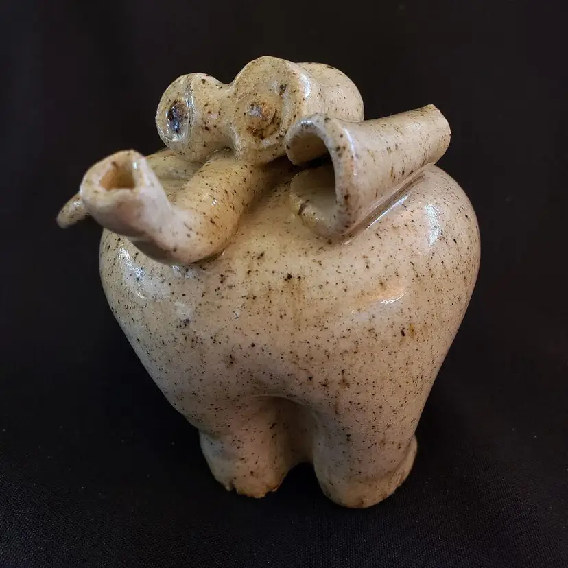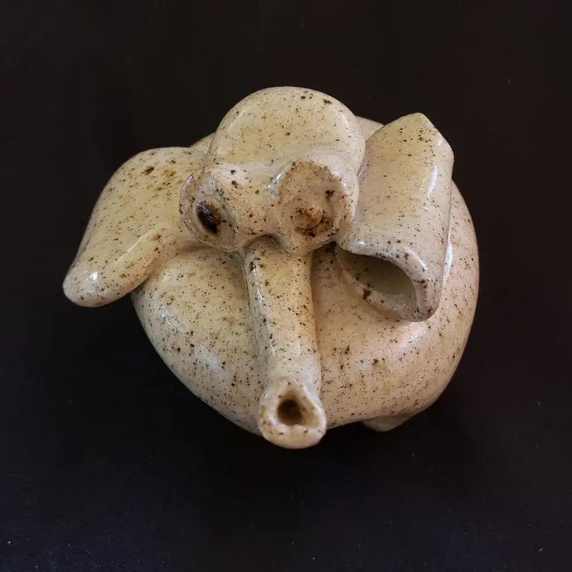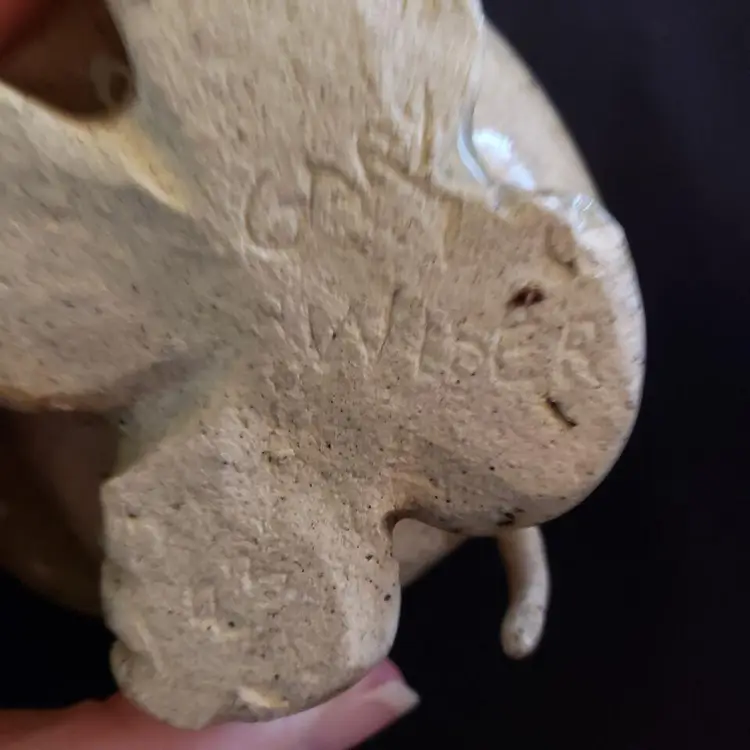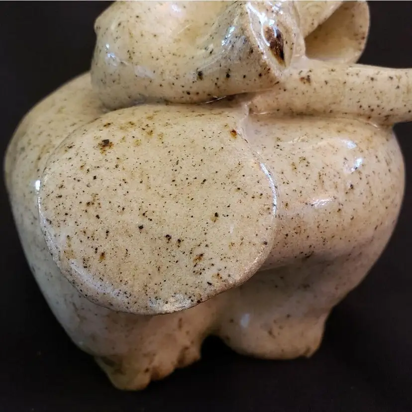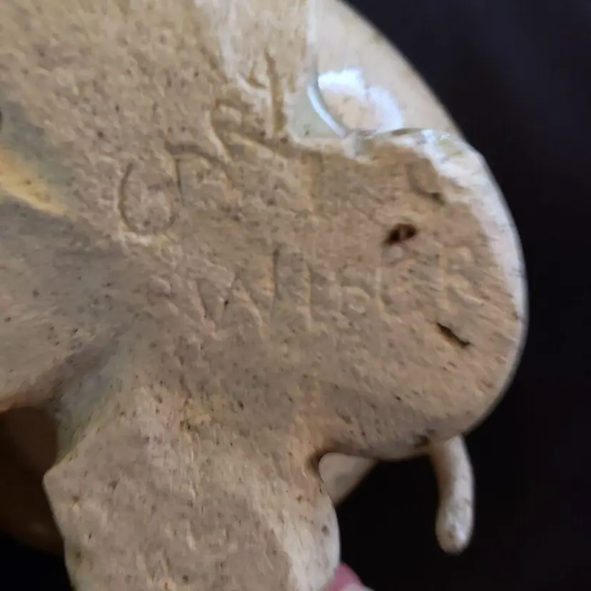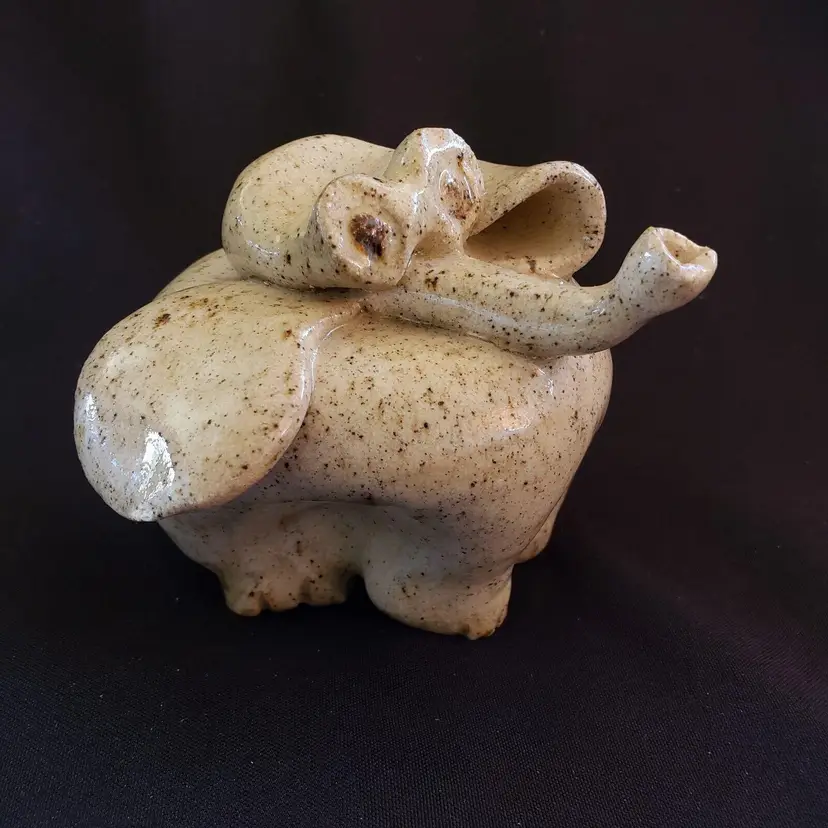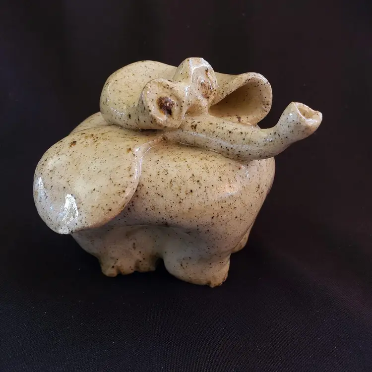 Vintage Eclectic Elephant Studio Art Ceramic Pottery Signed Gary W(not sure what the last name might be) & Dated 88 READ DESCRIPTION. Approximately 4 3/4" long. Used condition with a chip to the lower ear, dusty, fragile, does not necessarily sit straight, unreadable signature. Please view all photos as they are part of the description and please ask questions prior to purchase when possible.