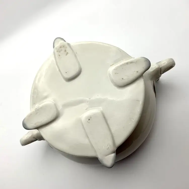 Measures approximately 5.5" tall (with lid) x 8" (including handles) with a 4" diameter opening.