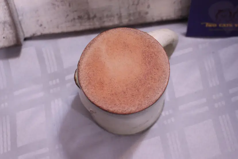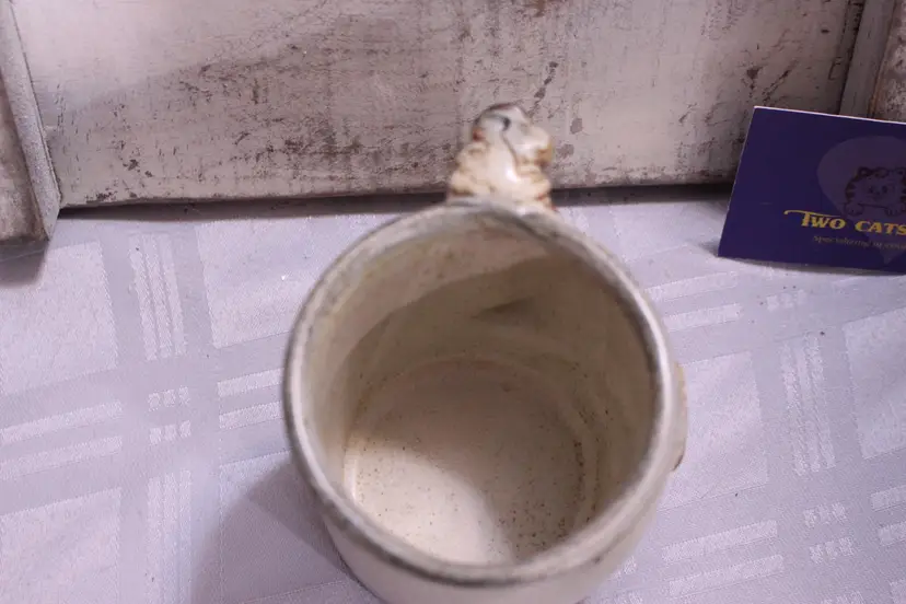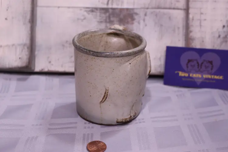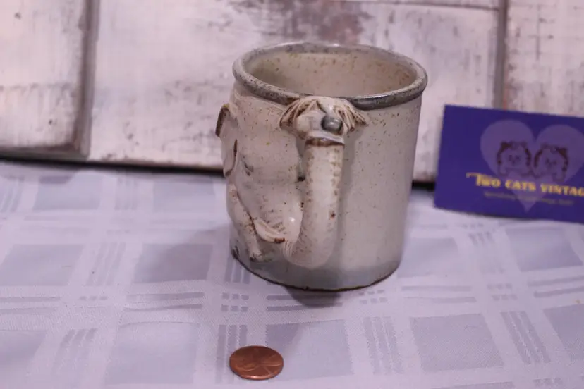 This is an amazing stonewhere mug. The handle is the trunk and he is eating something just picked from a tree.