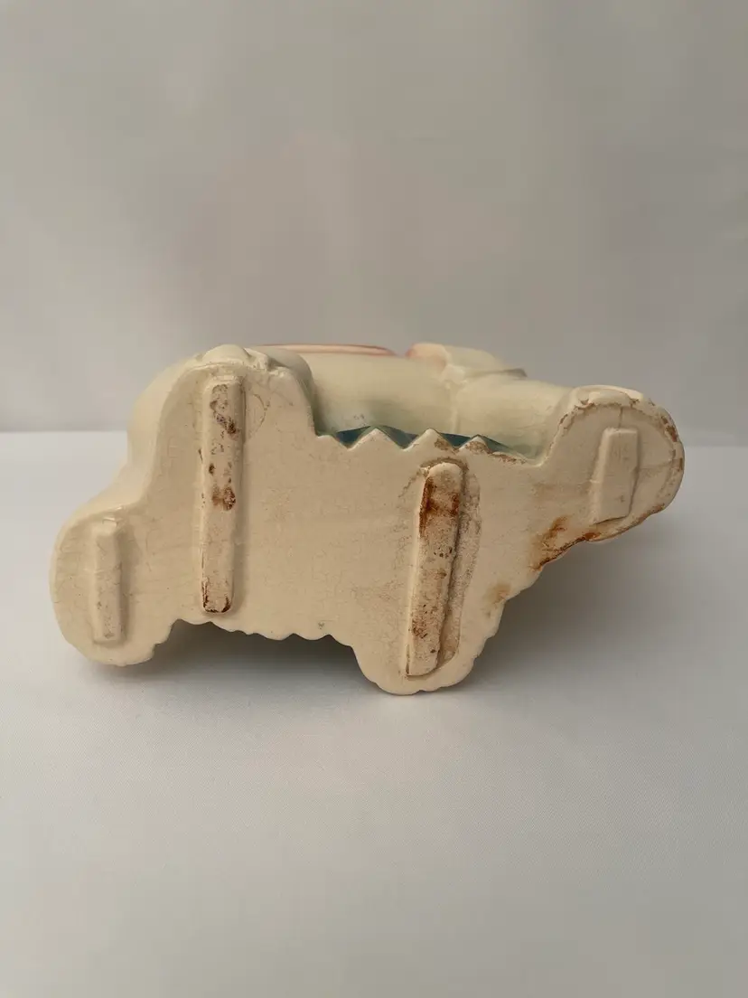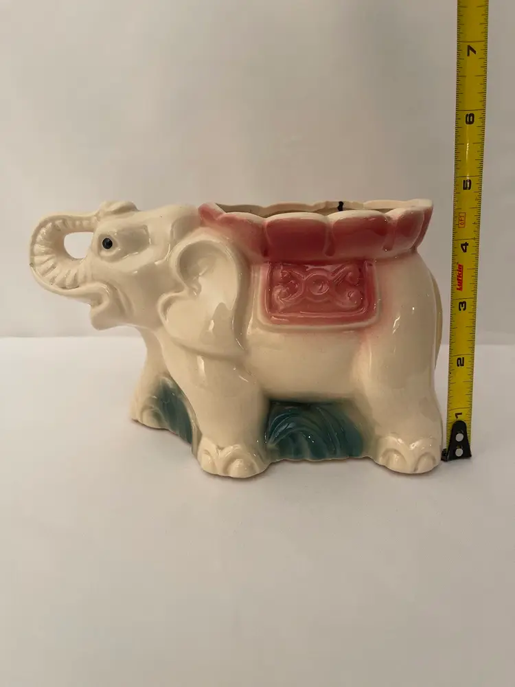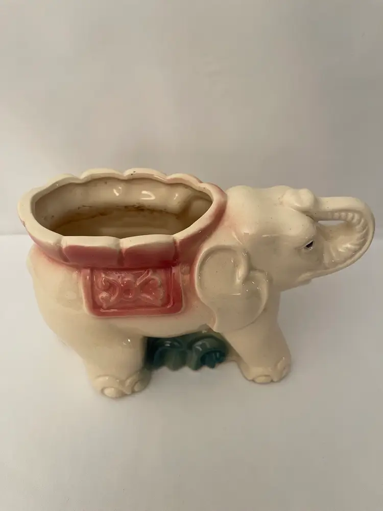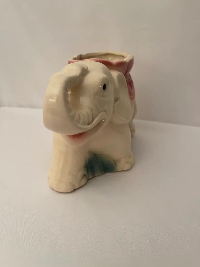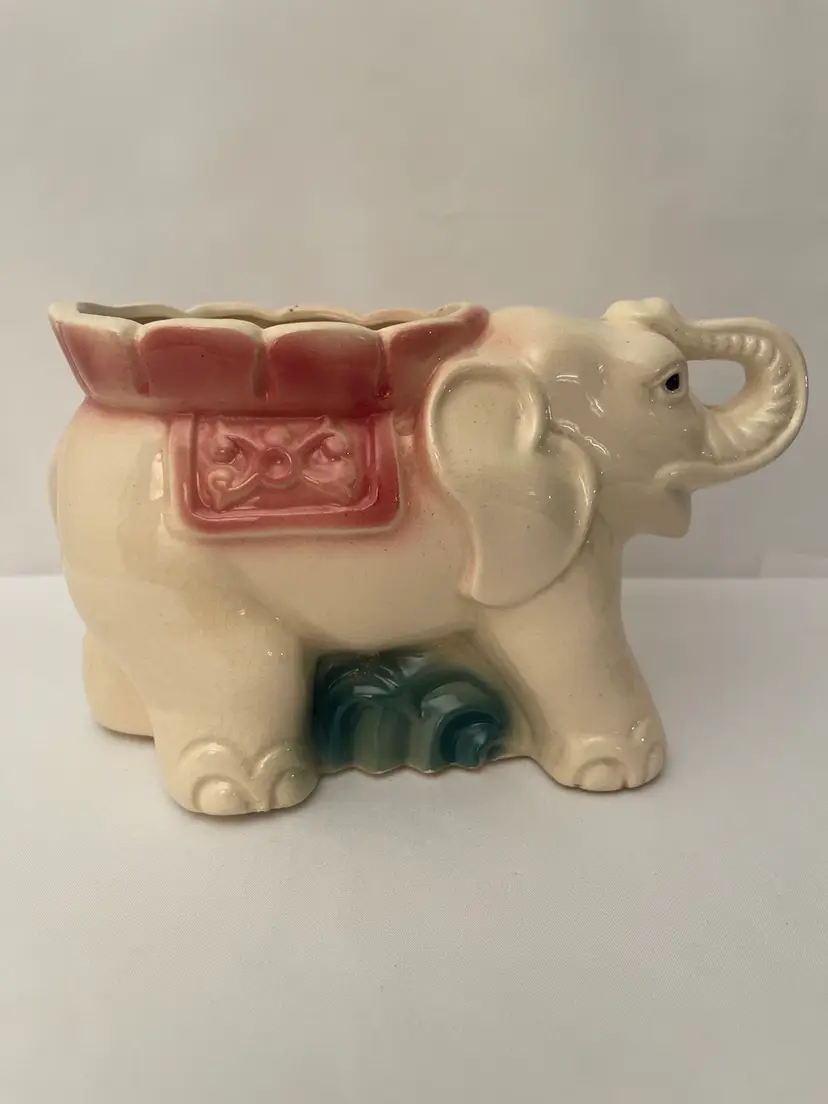Vintage Elephant Planter Cream/pink/green Mid Century Ceramic Vase. No chips