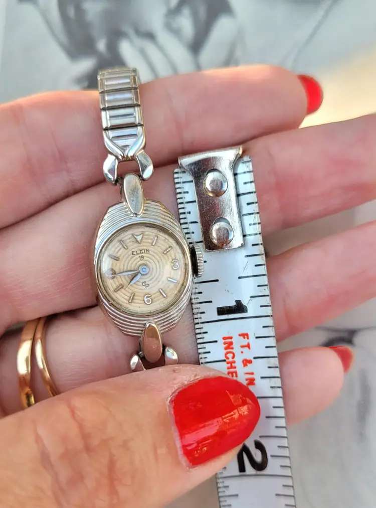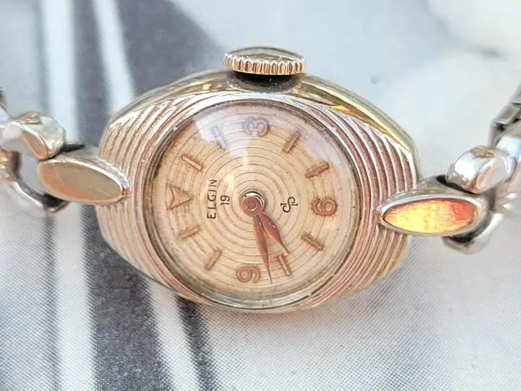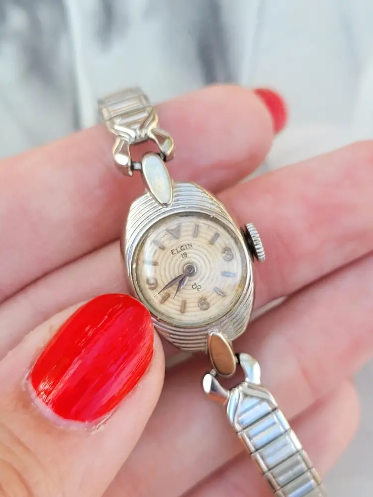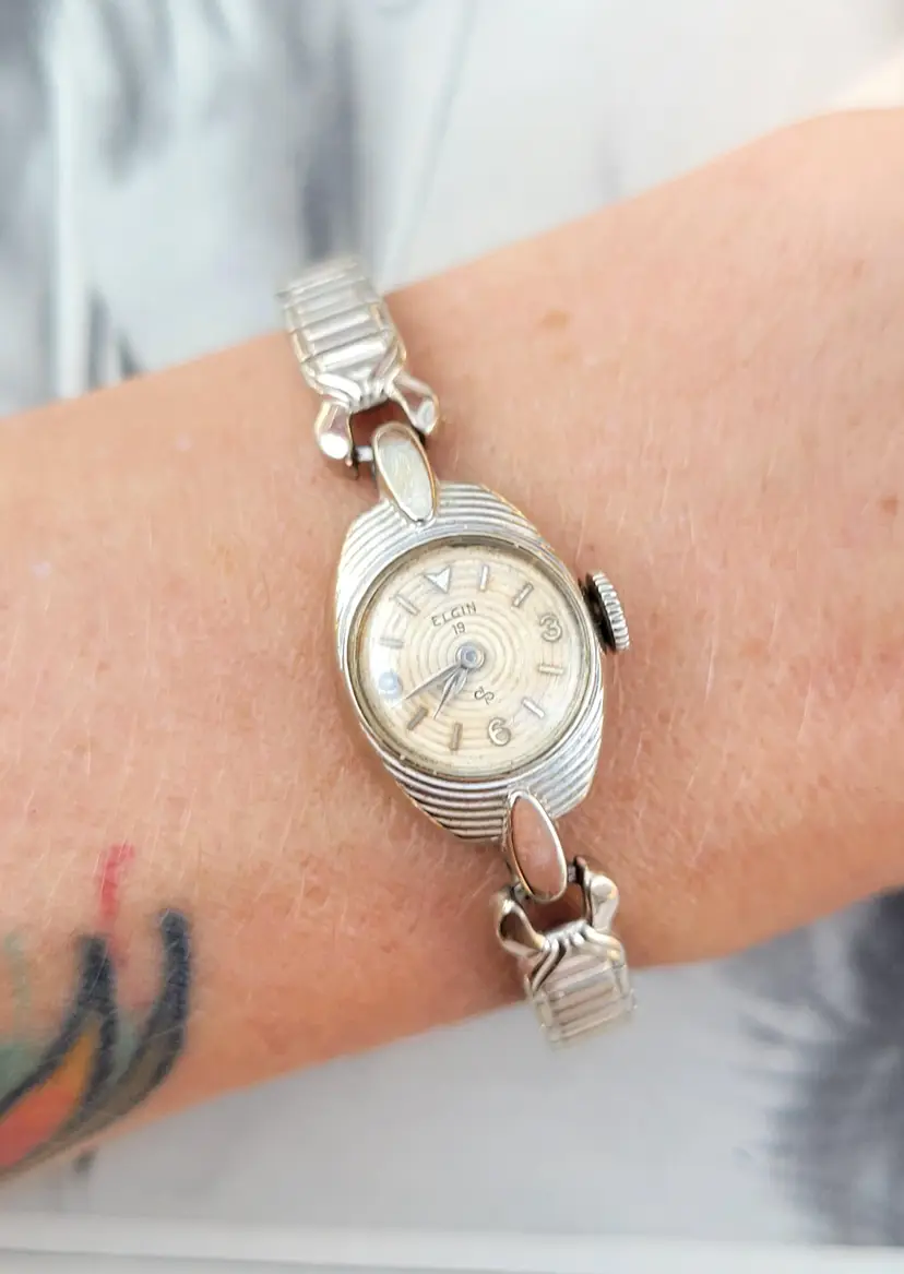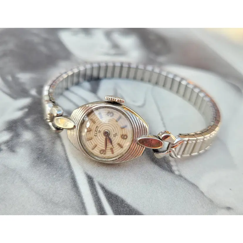 Vintage Elgin Mod 10k White Gold Filled 19 Jewel Ladies Mechanical Watch - Works