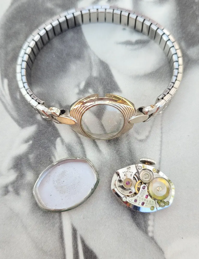 Rare 1965 atomic mod design wristwatch by quality watchmaker, Elgin! This has a 19 jewel 660 movement and runs well with good accuracy within a few minutes of perfect time. The band is stretchy so should fit most standard wrist sizes. It is in good overall condition, please see pictures for details and measurements.
