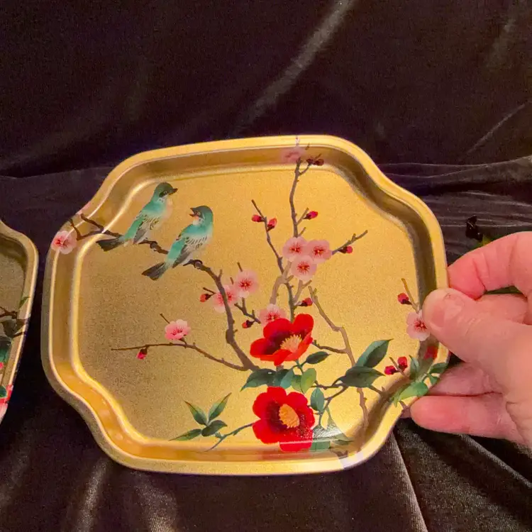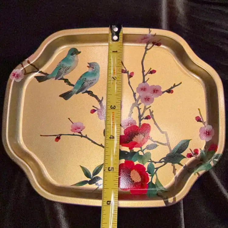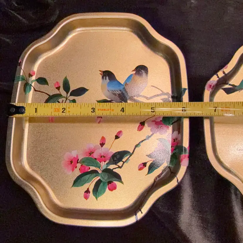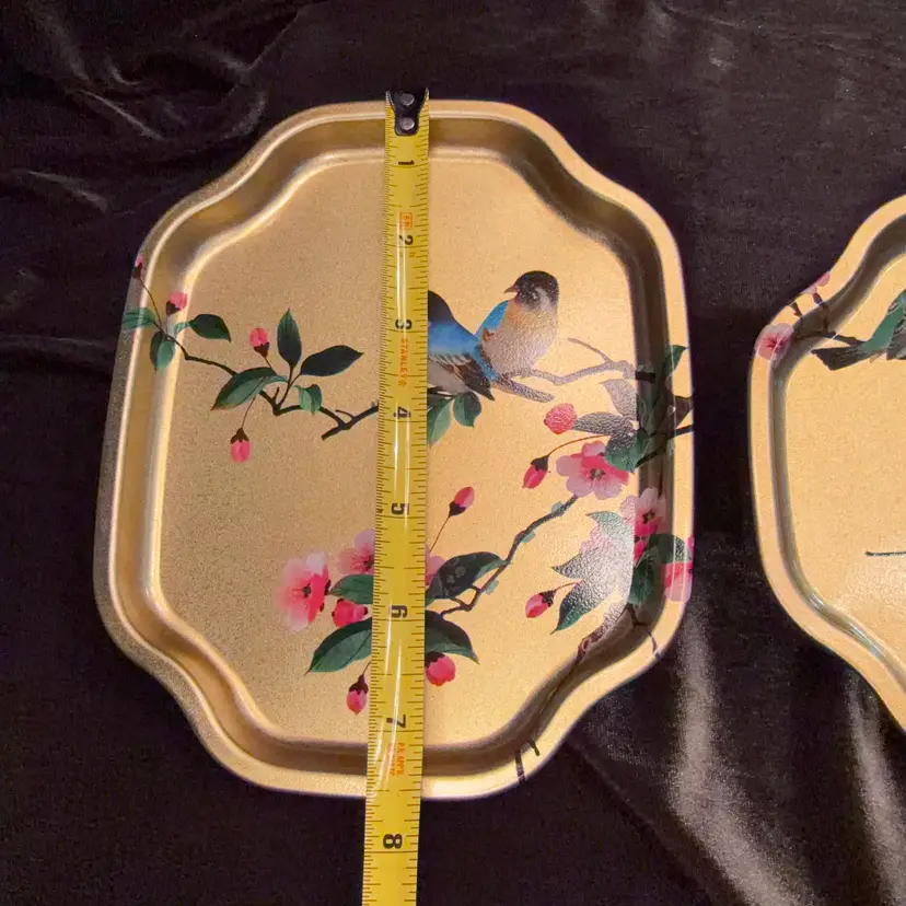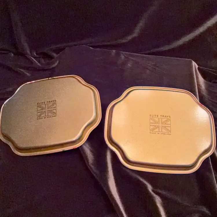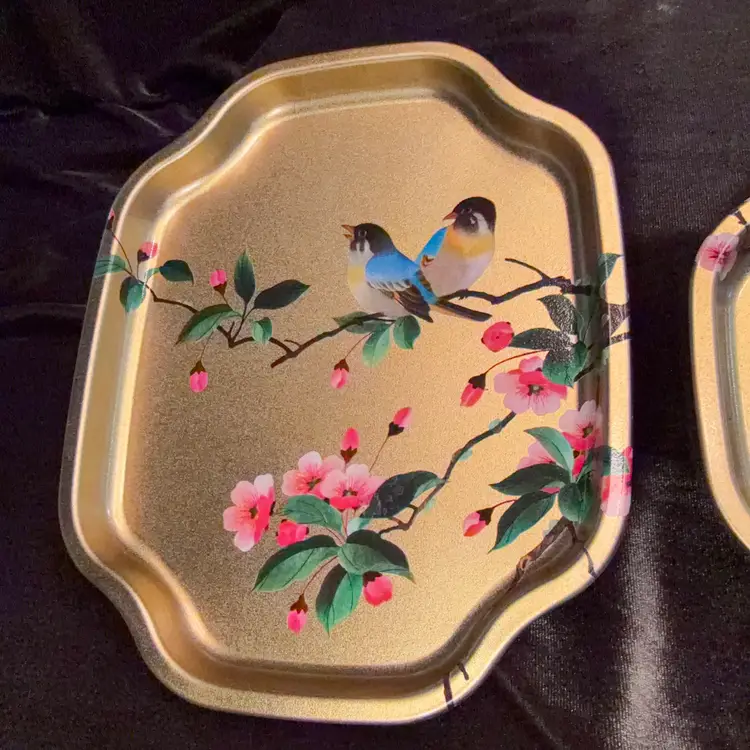 Vintage Elite Trays Bird Chinoiserie Snack Tray Set of 2 Gold Metal Made in England