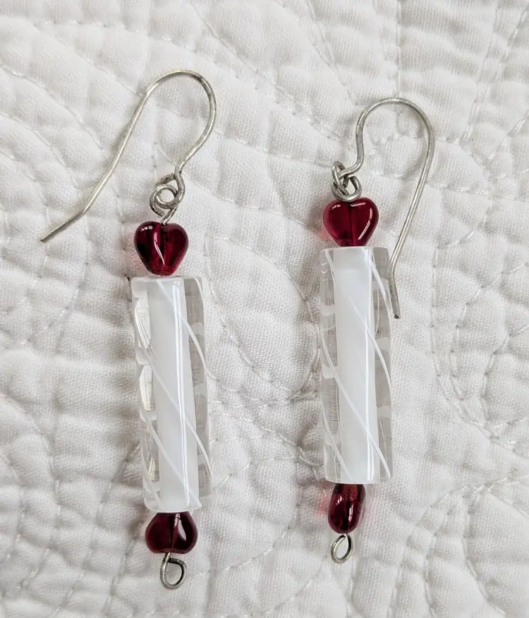 2-1/4" long. Pierced, on earring wire. Unmarked but acid tests as positive for sterling silver.