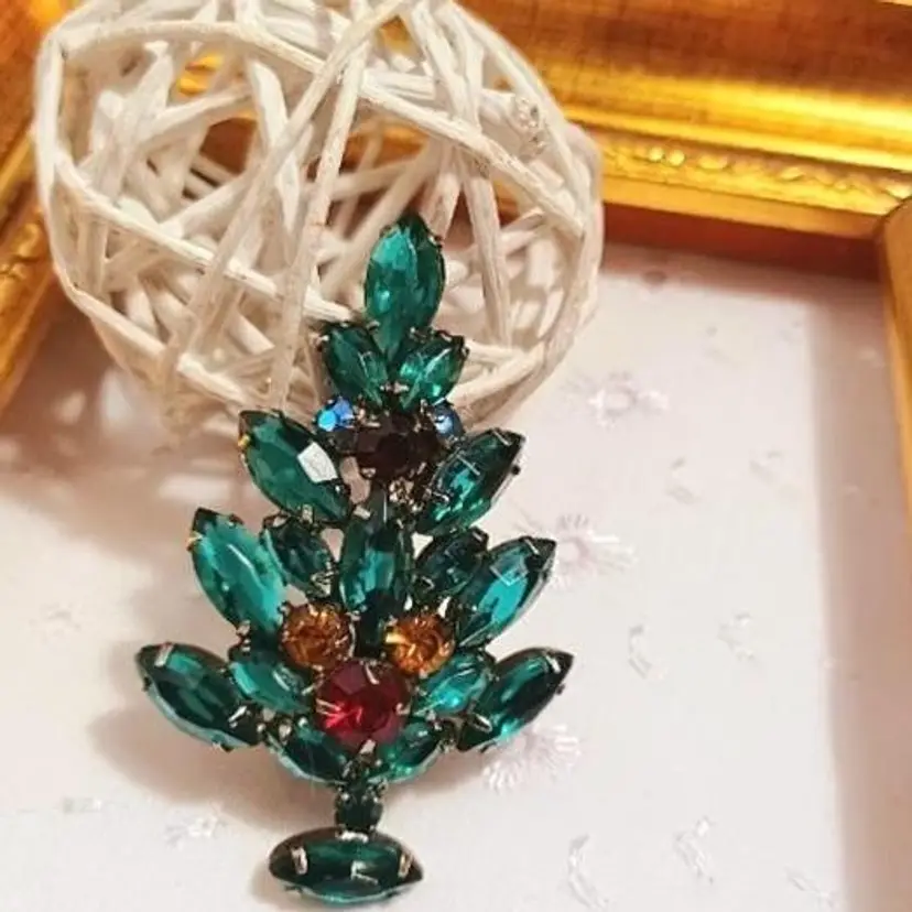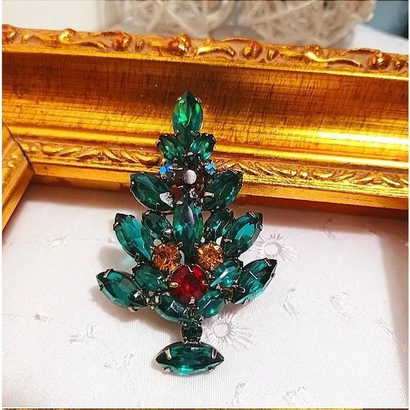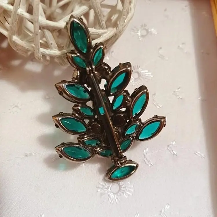 Add a touch of vintage glam to your outfit with this stunning emerald green rhinestone brooch. Perfect for collectors or as a statement piece for any occasion.