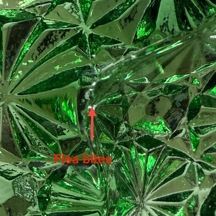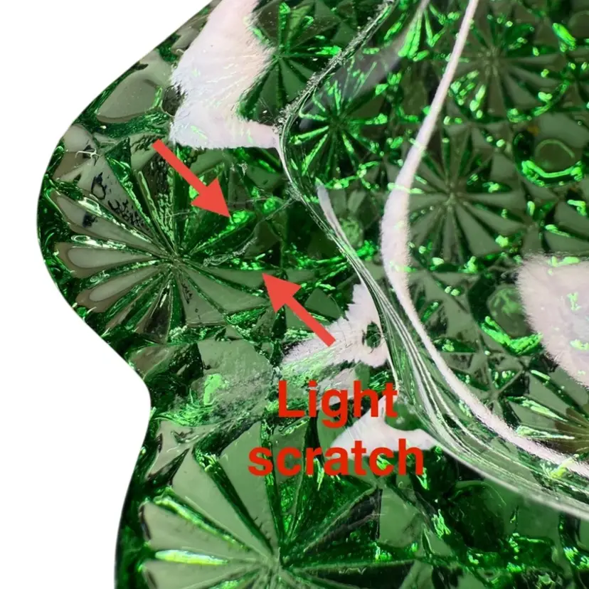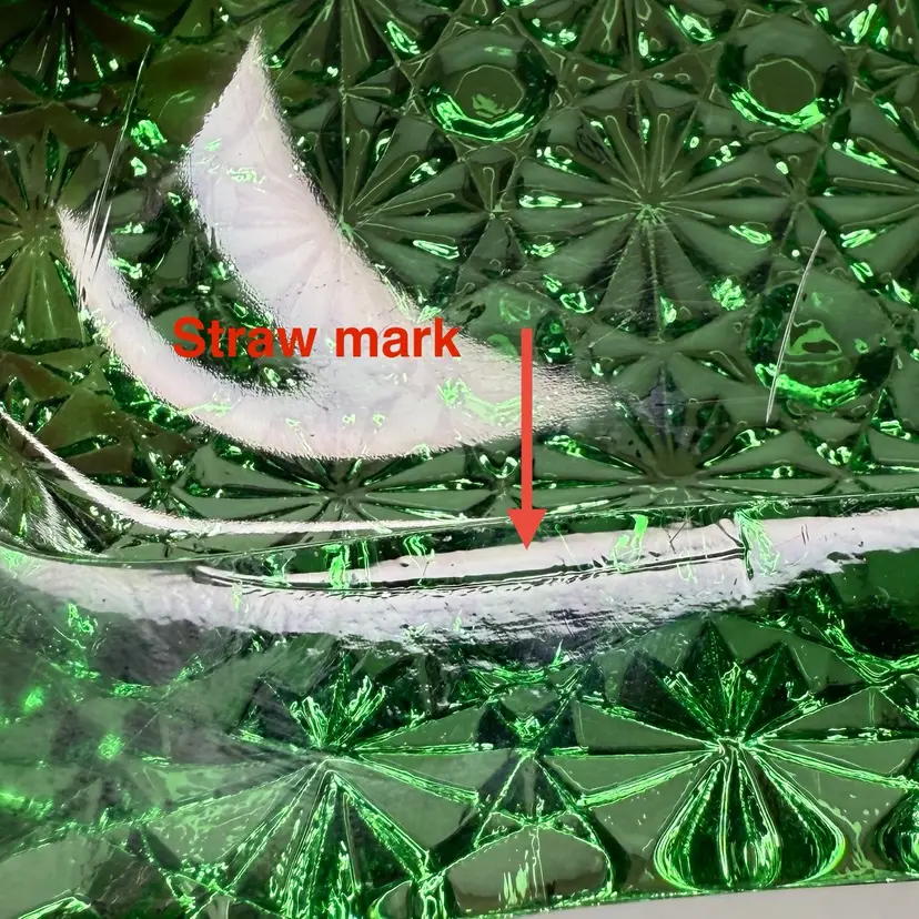Condition: Light scratch next to one of the divots. Straw line on the edge. Very tiny flea bites on one of the curved edges, see last 3 pictures.