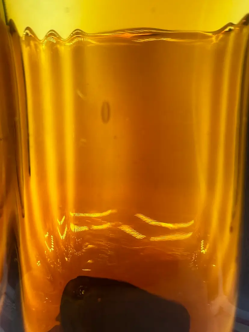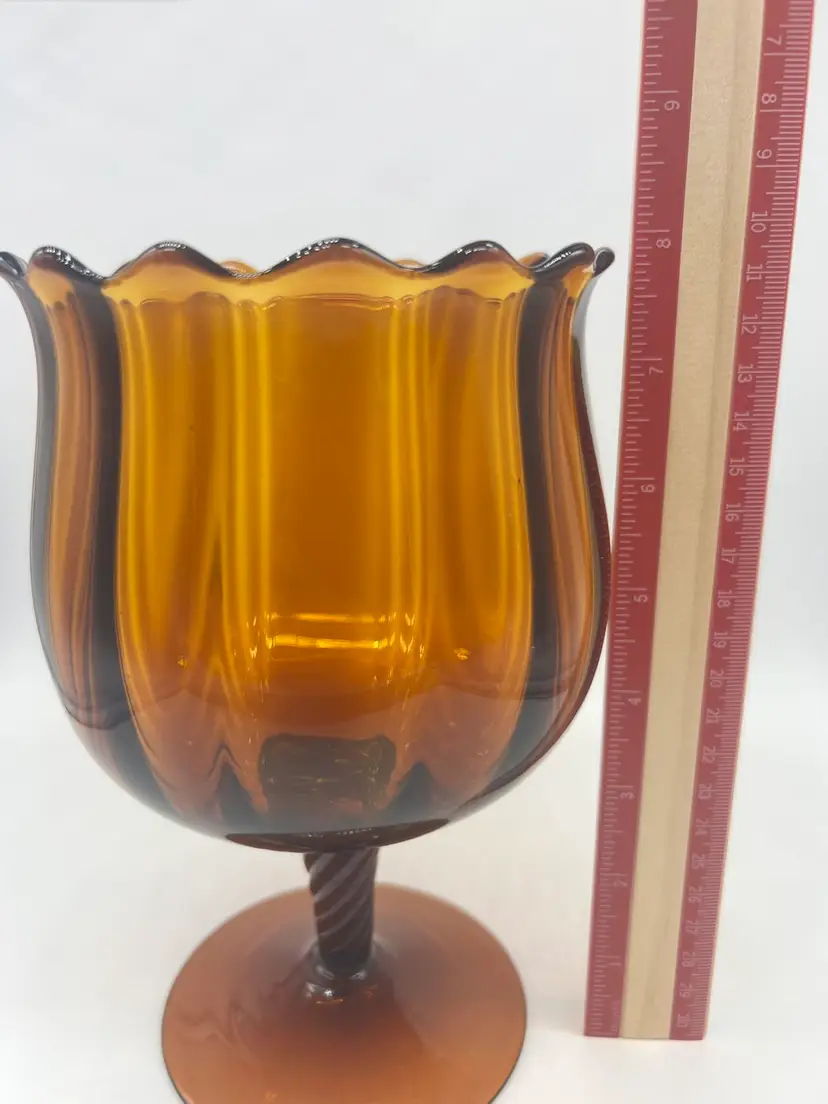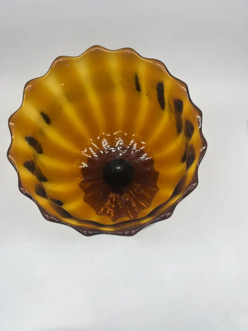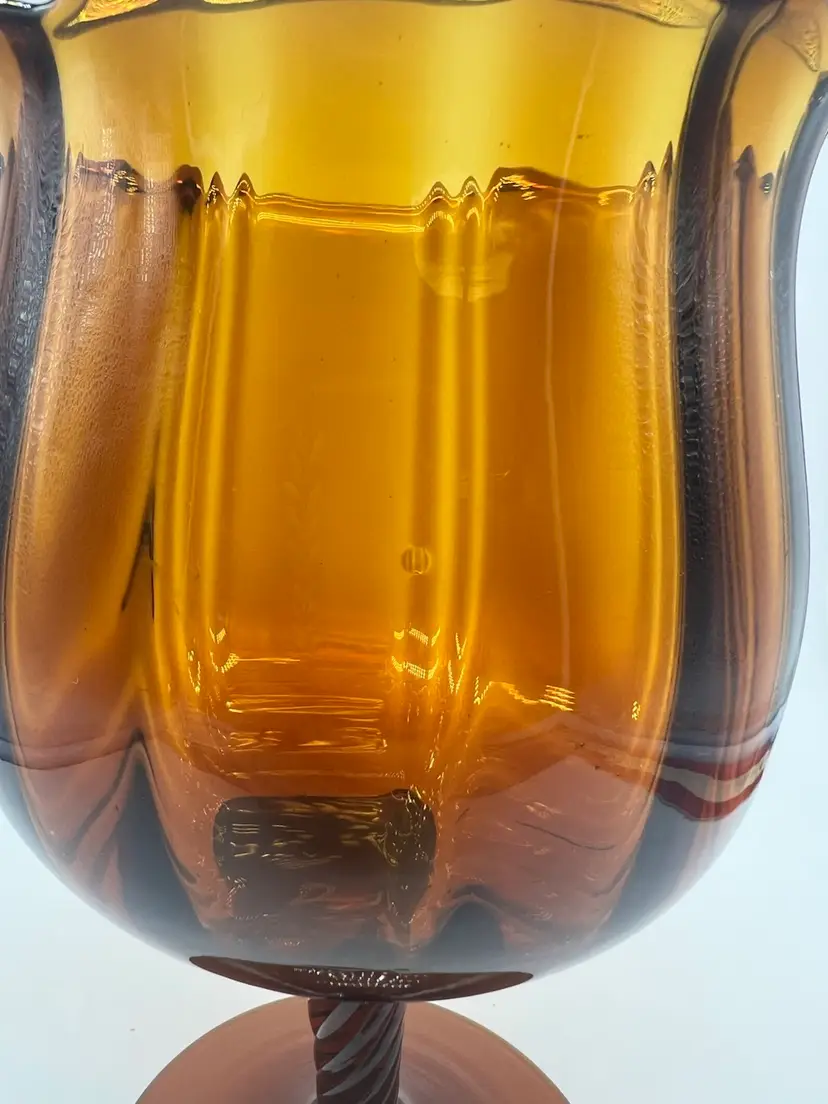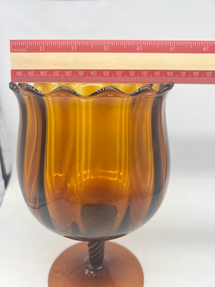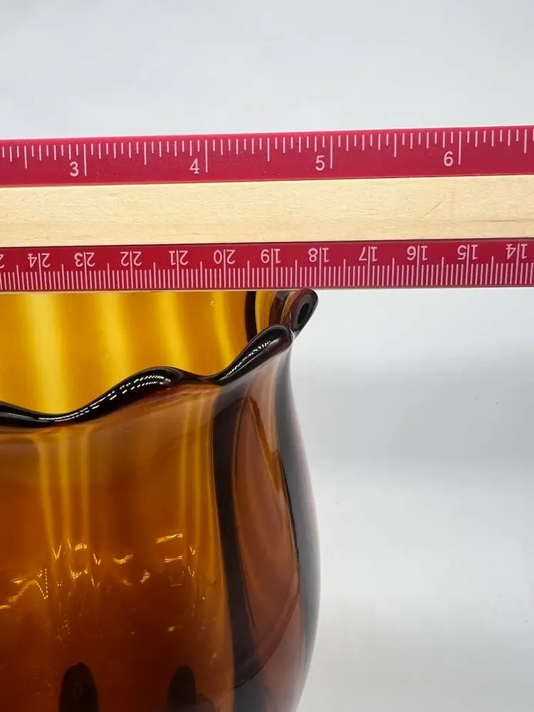 Excellent condition. Bubbles inside glass as pictured above. Measures approximately 5” wide and 8” tall.