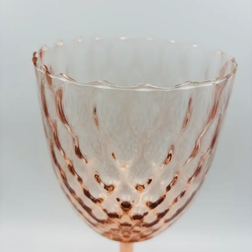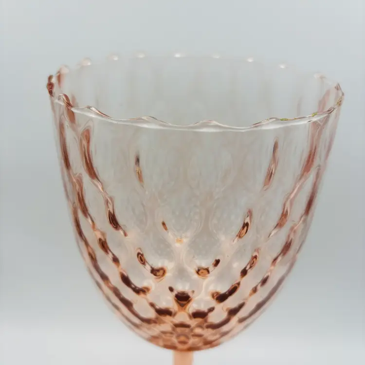 For sale is a Vintage Empoli Glass Salmon Pink Optic Candy Jar Circus Tent Italian 13in No Lid