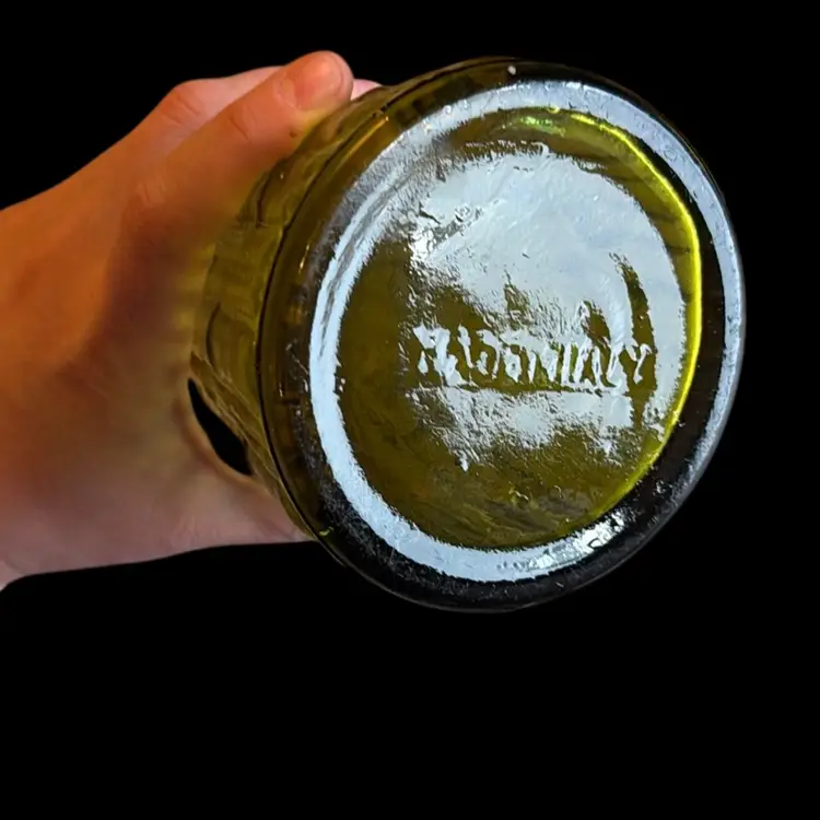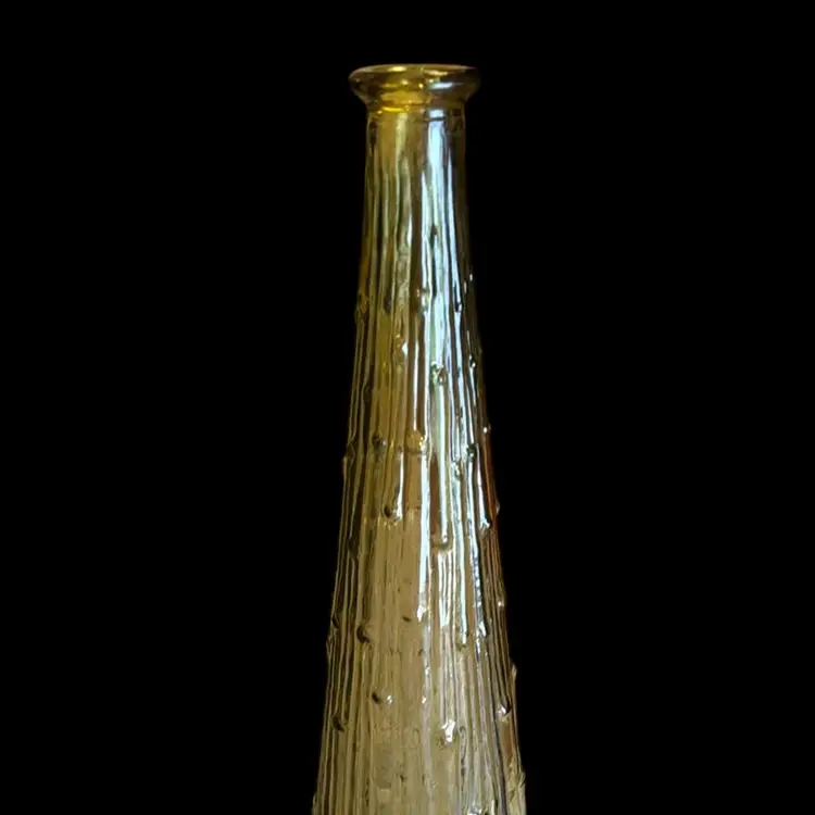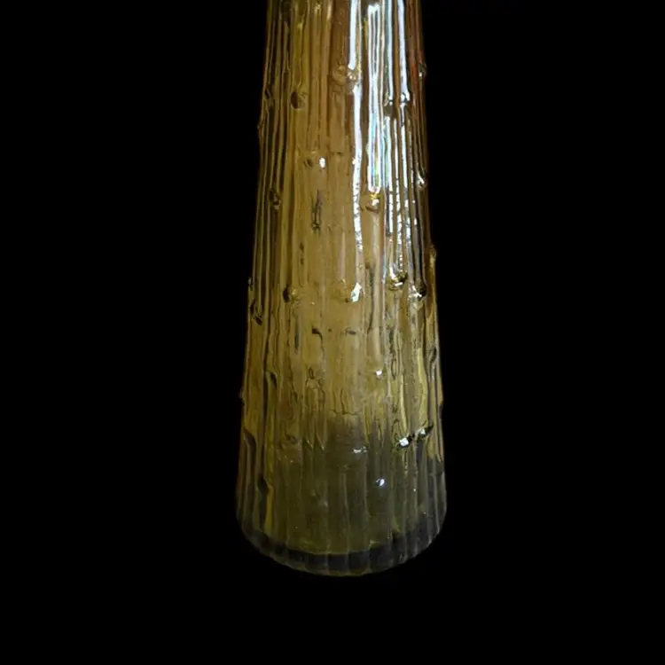 Vintage EMPOLI Made in Italy, Decanter, No Stopper, Wax Drip, Bamboo Pattern Olive Green Glass, MCM. 15.5” tall.