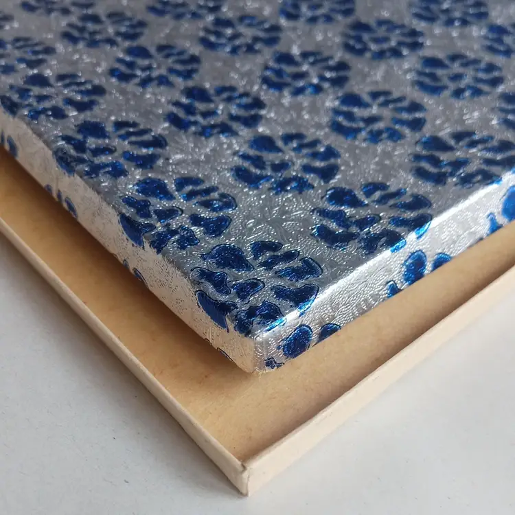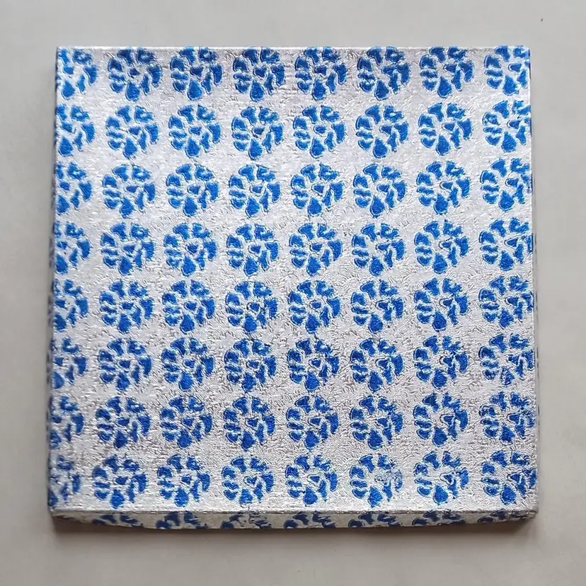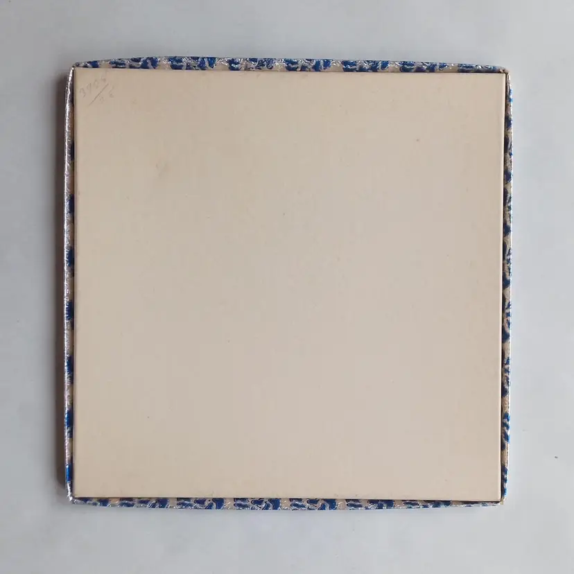 This vintage cardboard box is the perfect addition to your holiday collection. Measuring 8 inches by 8 inches and half an inch thick, it features a shiny silver base with an overlay pattern of shiny blue snowflakes. The box is empty, making it perfect for storing small holiday items or giving as a gift. The snowflake design is reminiscent of winter and adds a touch of nostalgia to any setting. The box is made of sturdy cardboard and is not handmade or modified. Add this unique piece to your collection for a festive touch this holiday season.