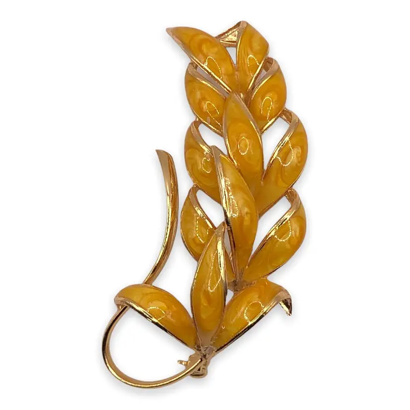 Vintage Enamel Floral Half Wreath Pin Brooch Yellow Gold Toned Flowers Leafs.