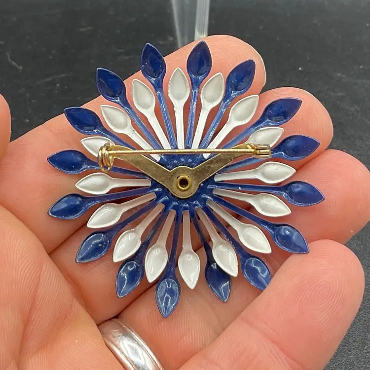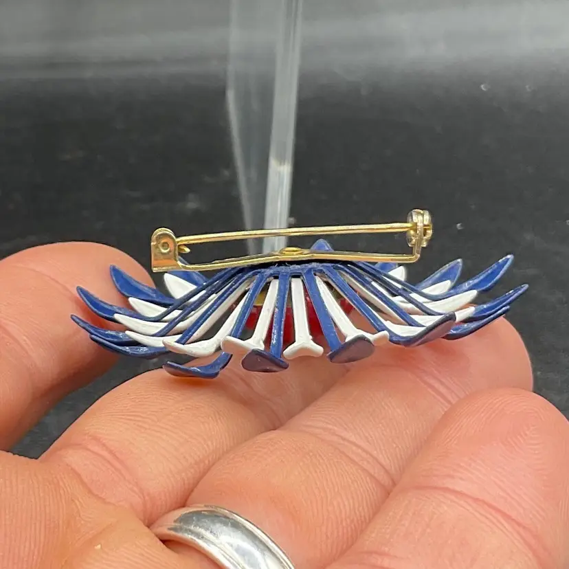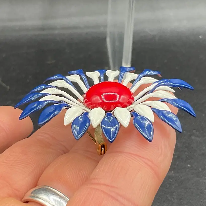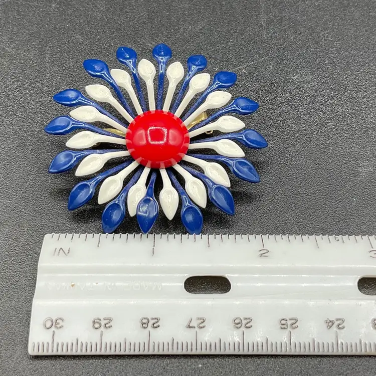 Vintage enamel colorful flower brooch with roll barrel closure no chips