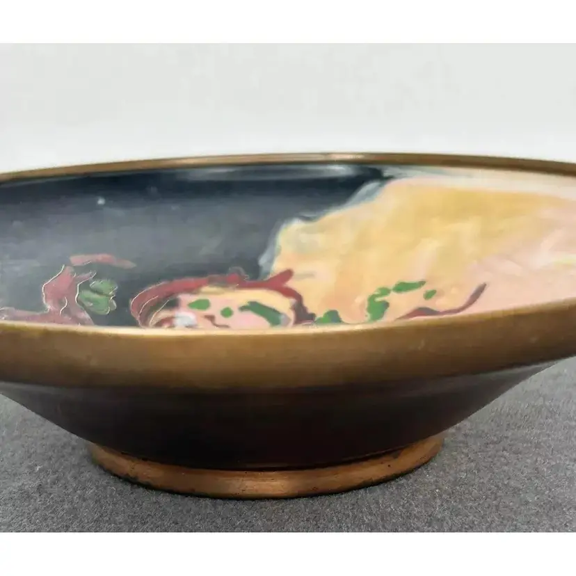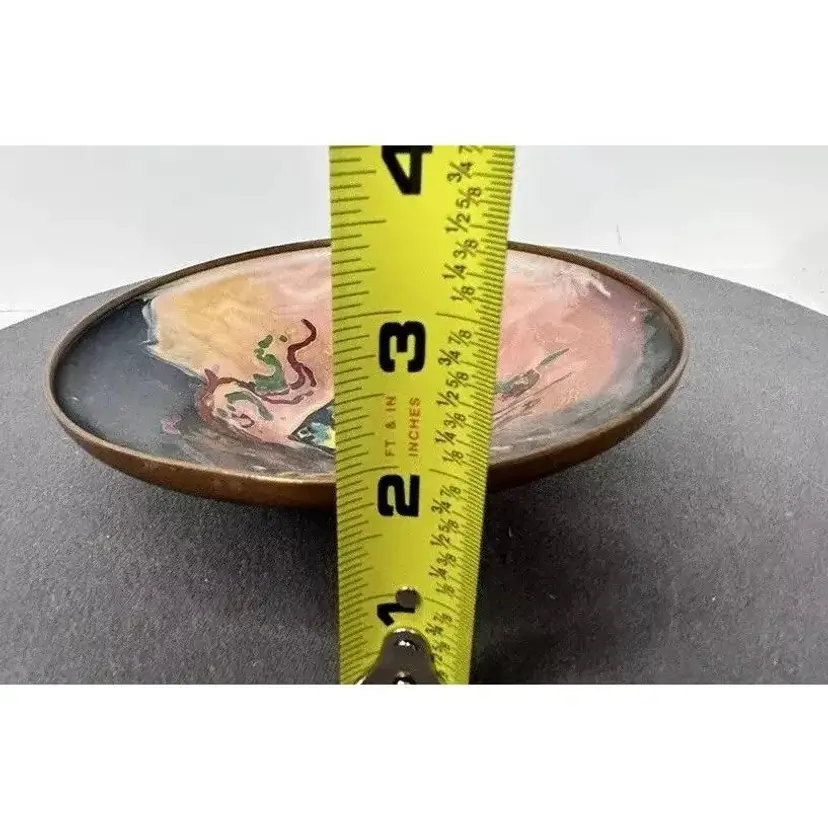 Vintage Enamel on Copper Original Art Angel Fish Bowl Handmade & Signed Kayser is in excellent vintage pre-owned condition, with No dents and great vintage patina. Please review all pictures for proper assessment of its excellent vintage pre-owned condition.