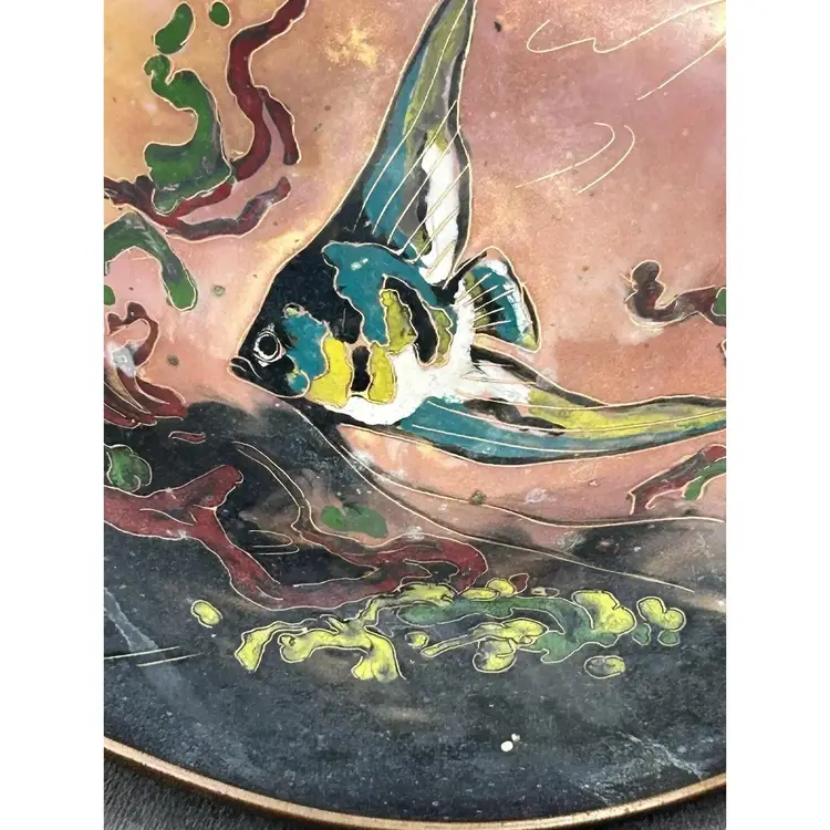 Enamel on Copper Original Art Angel Fish from Holland Dish - Handmade by Kayser