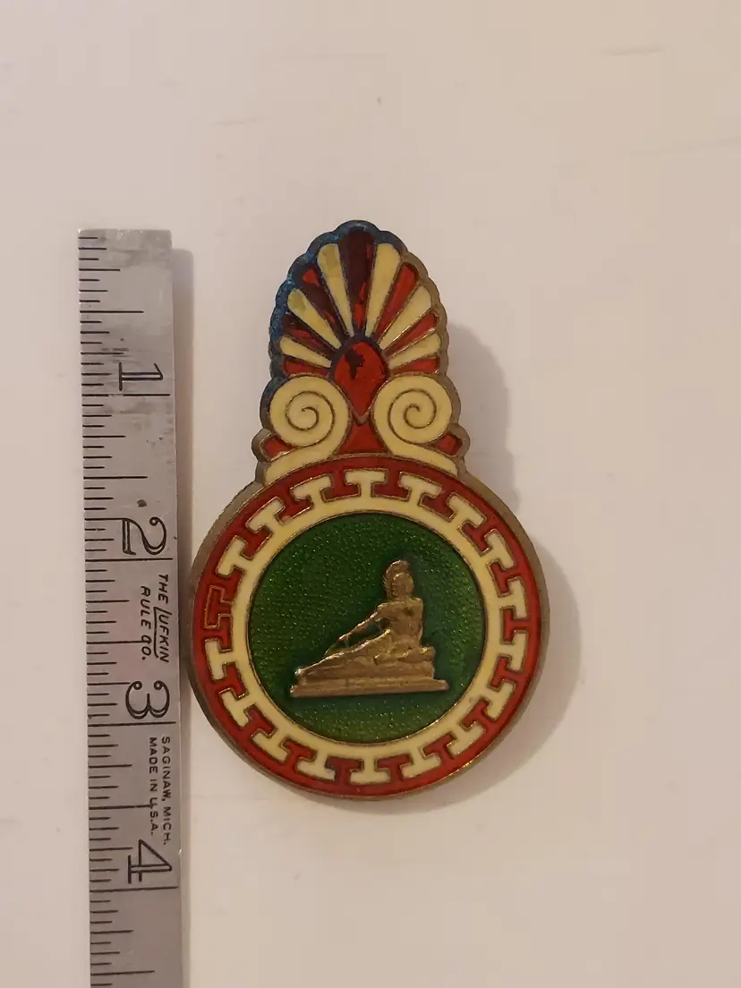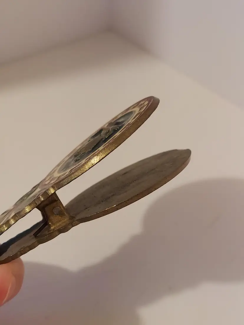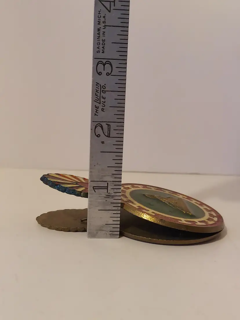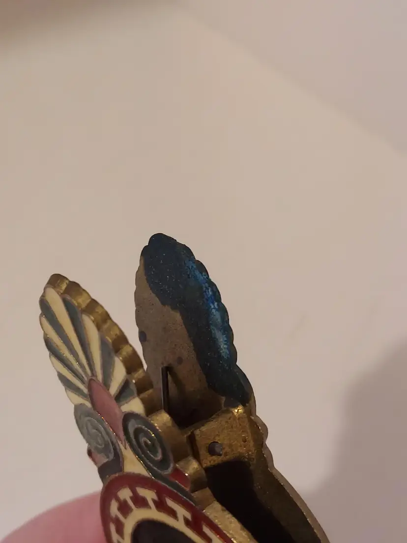 This vintage Brass paper clip has an ancient Greek/Spartan Enameled decor on both sides. It measures approximately 3.5 inches. There are no markings but there are signs of oxidation, please see photos.