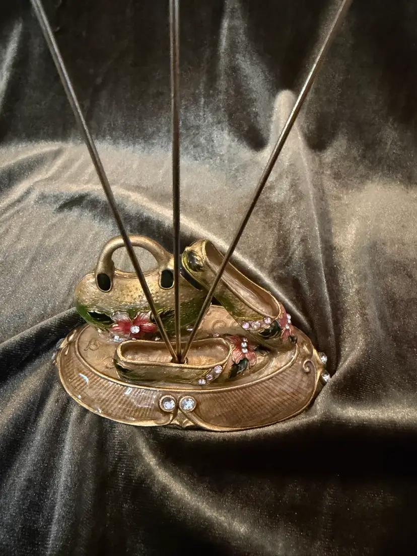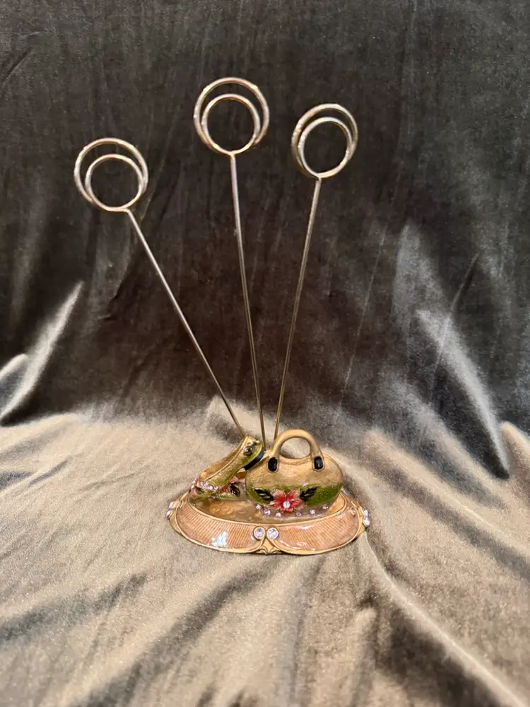Vintage Enameled Jeweled Cloisonné Card,Memo, Photo, Business card Holder Desk Decor