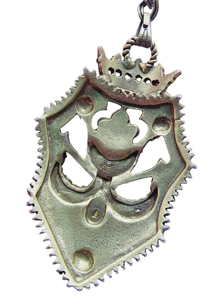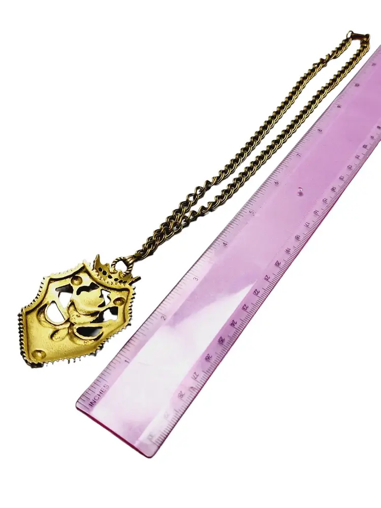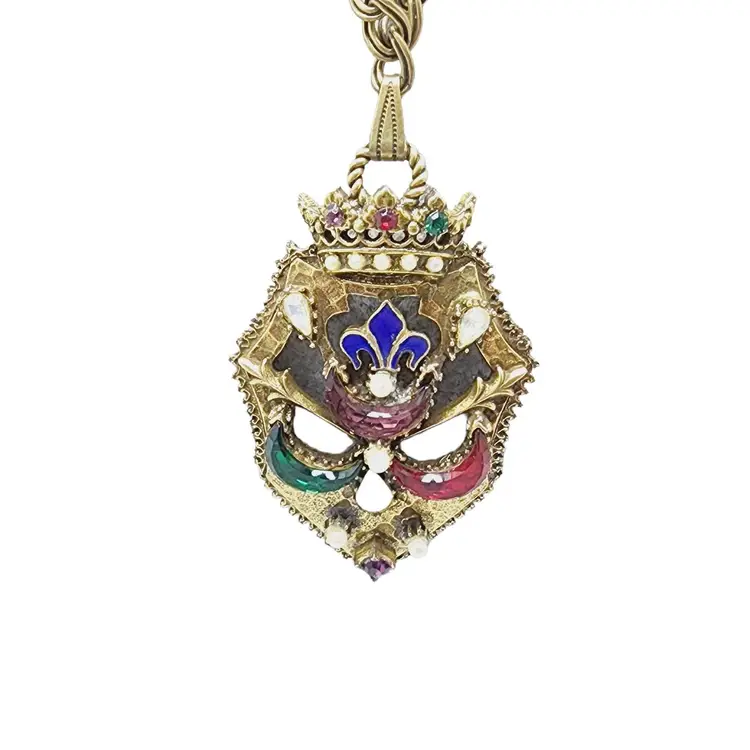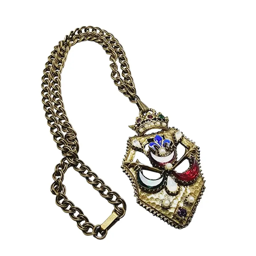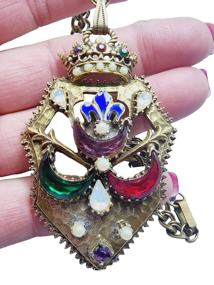 Vintage Enameled & Jeweled Heraldic Shield Pendant Necklace (A1076)