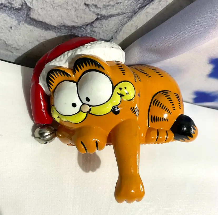 Vintage Enesco 1978 Garfield Holiday Stocking Hanger - Rubber Grip Pad - Made in Hong Kong