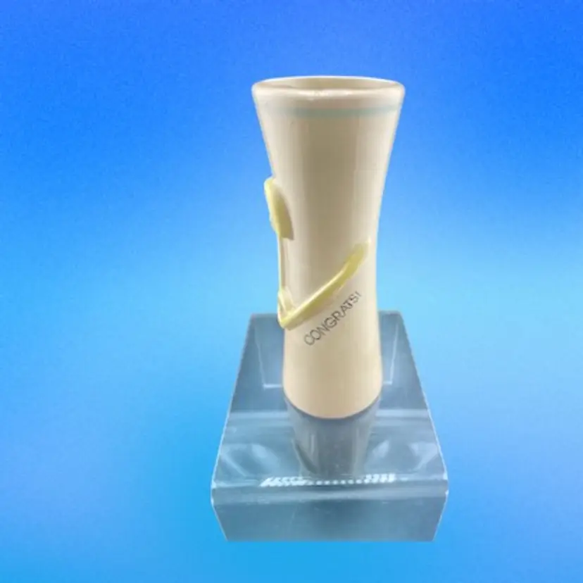 This is a great bud vase for someone who is having a baby. There are very tiny fleabites on the rim. There are no cracks.