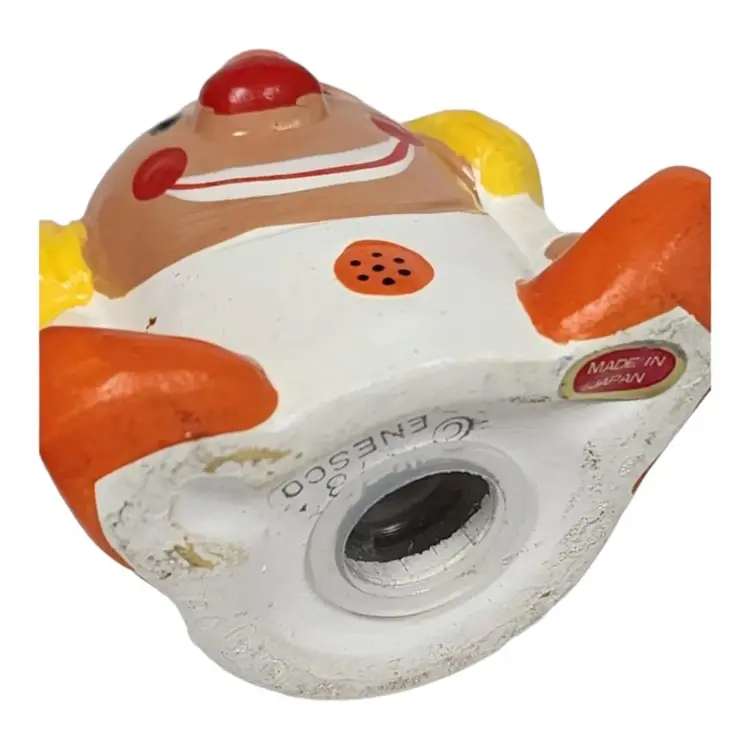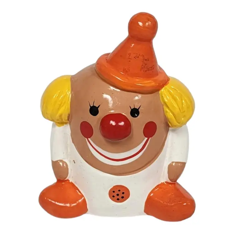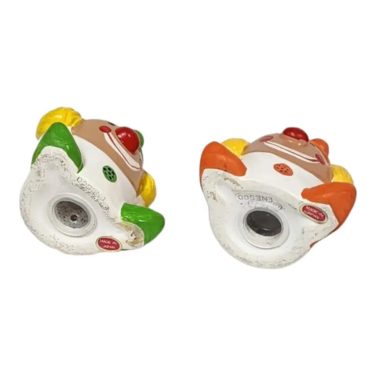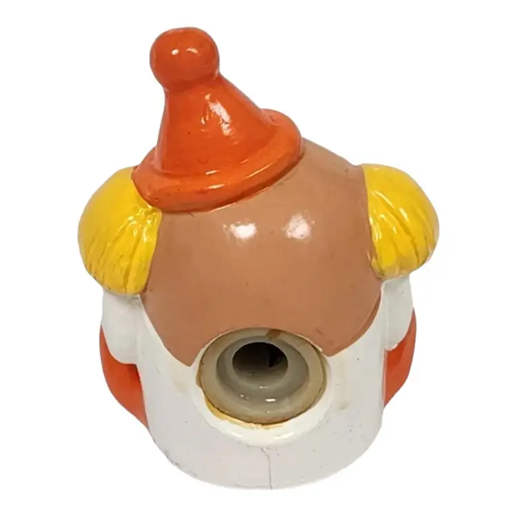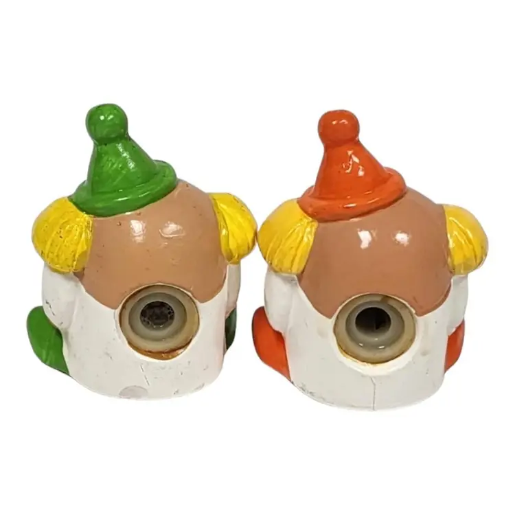 Enhance your collection with this captivating Vintage Enesco Ceramic Clown Pencil Sharpeners Set of 2. Crafted with intricate detail, these charming clown pencil sharpeners add a touch of whimsy to your desk while evoking nostalgia from a bygone era. Their vibrant colors and functional design make them a must-have for both collectors and vintage decor enthusiasts. Don't miss the chance to own these delightful pieces of artistry and history