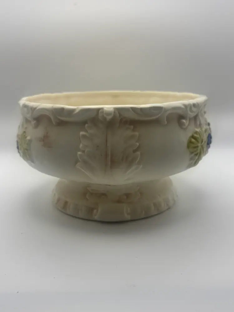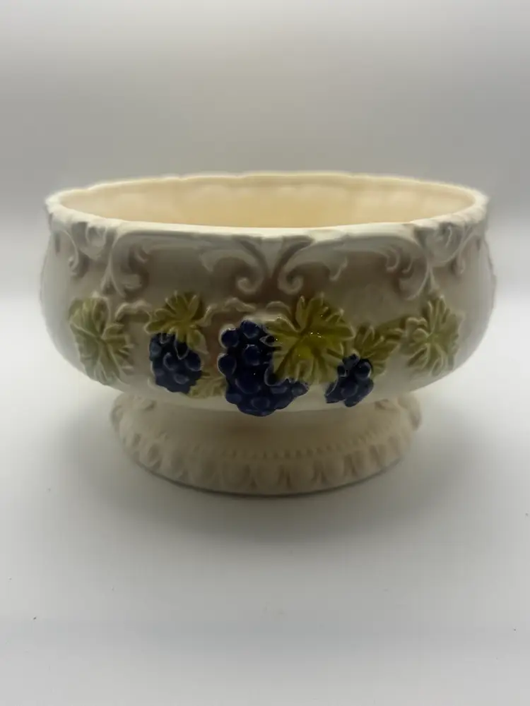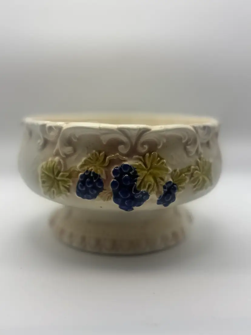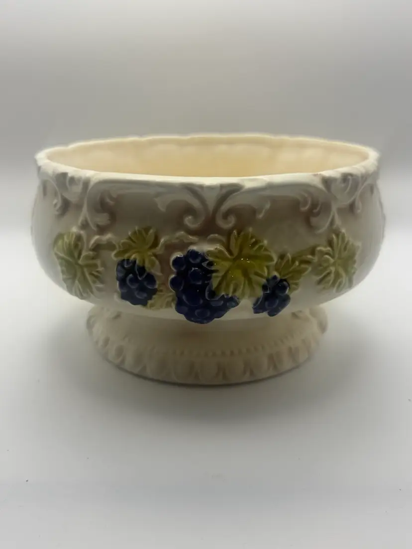 Vintage Enesco Ceramic Planter Fruit Pattern 4.25H, 6.5”Diameter