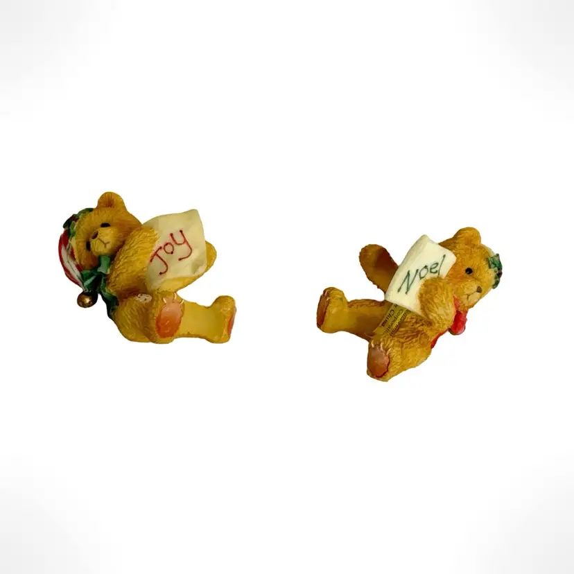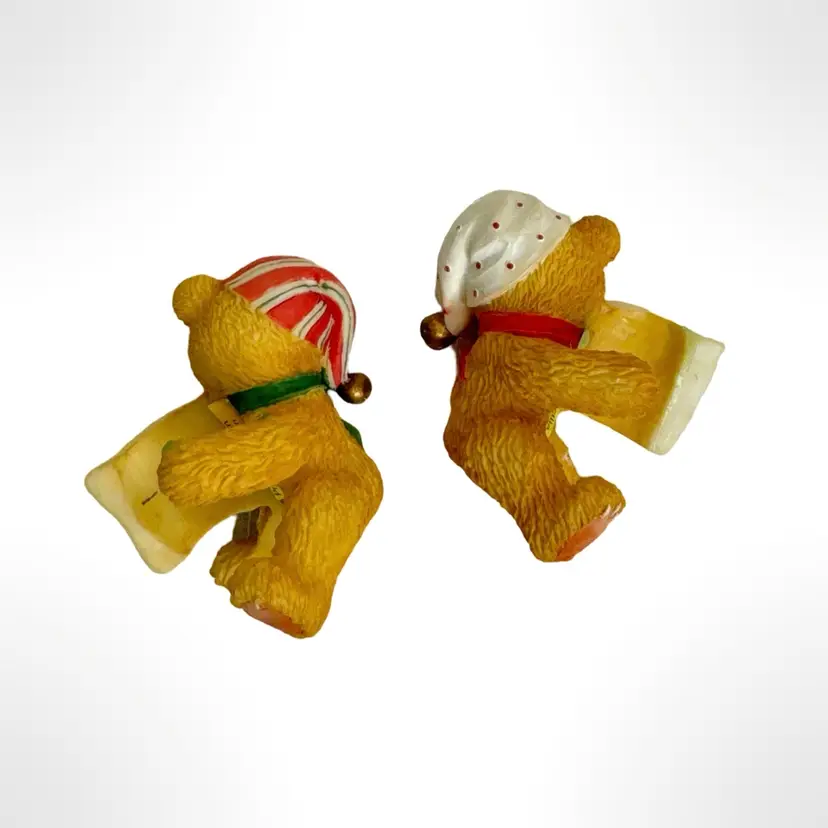 Adorable resin teddy bear candle huggers by Enesco in very good vintage condition.