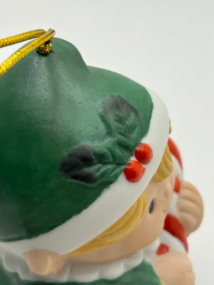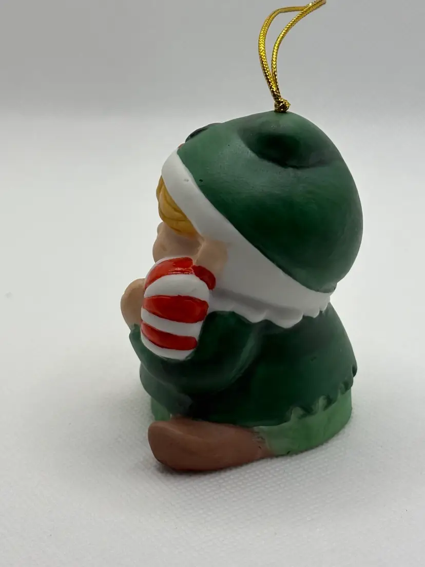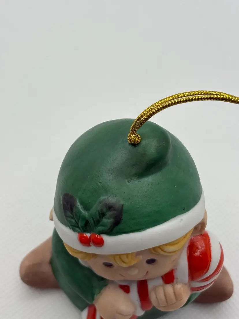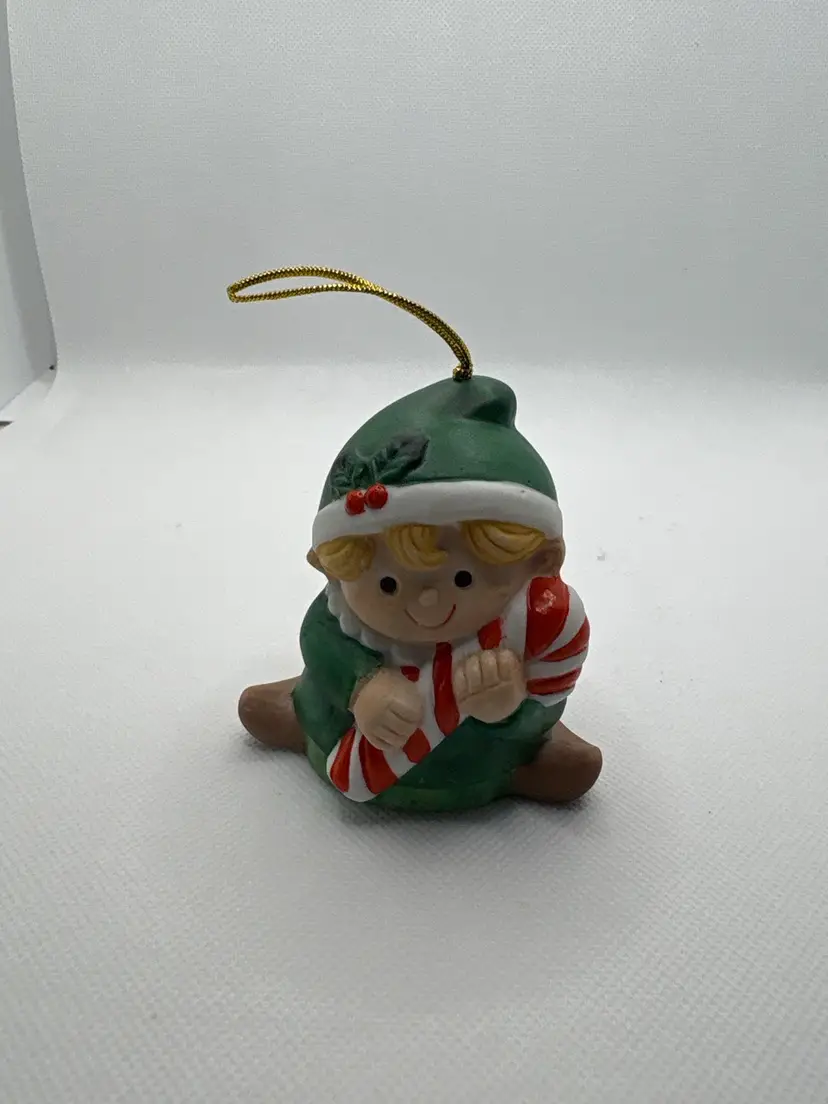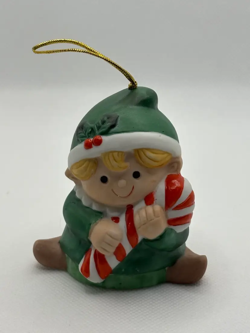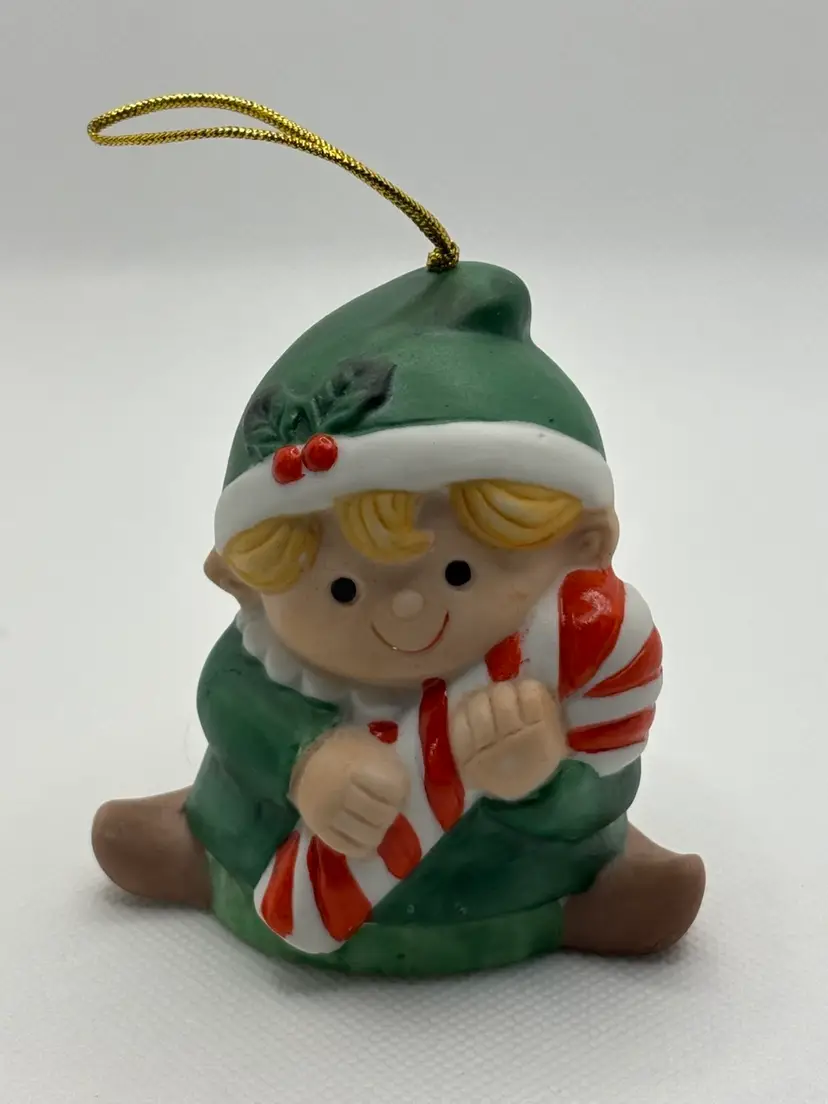 home with this charming Enesco Christmas Elf ornament. • Features: Sweet blonde elf in a green outfit, holding a red-and-white candy cane. • Material: Hand-painted ceramic/resin. • Condition: Excellent – no chips, cracks, or fading. Gold hanging cord intact. • Perfect for: Holiday décor, tree trimming, vintage ornament collectors, or as a unique gift.