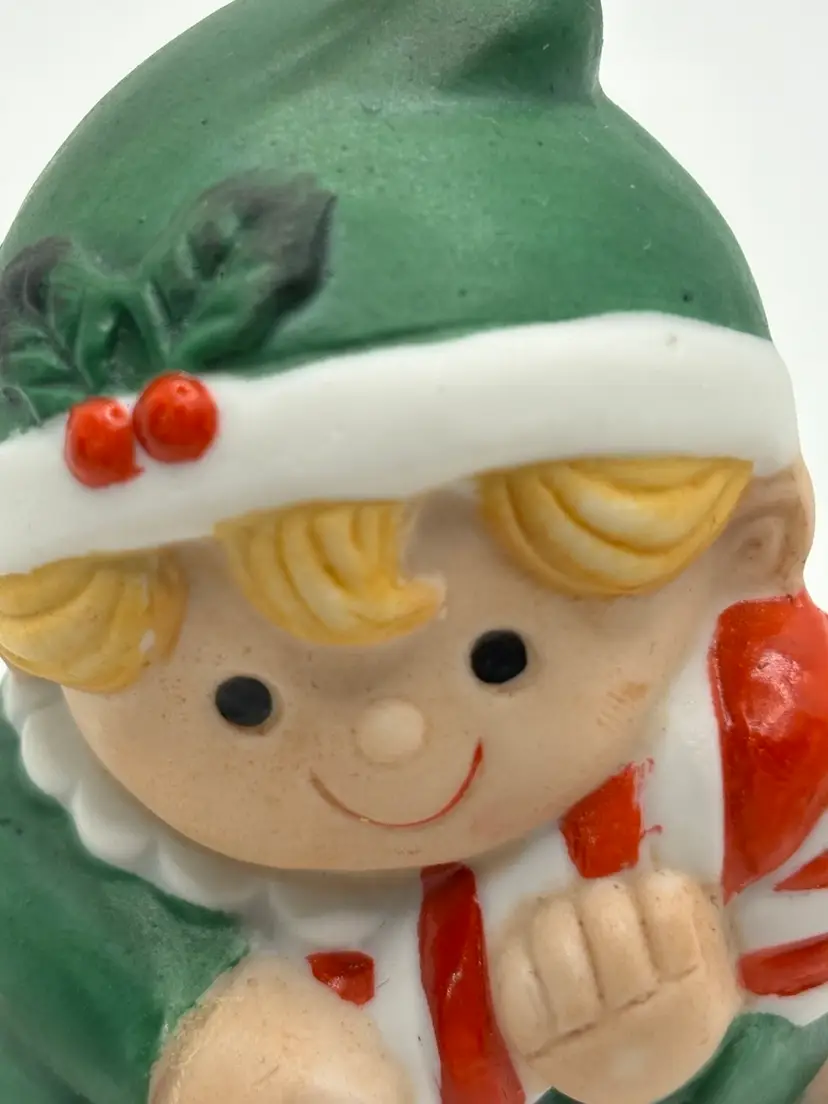 This piece is a delightful reminder of classic Christmas charm and craftsmanship. Whether you collect Enesco or simply love whimsical vintage holiday pieces, this little elf will make a magical addition to your festive season!