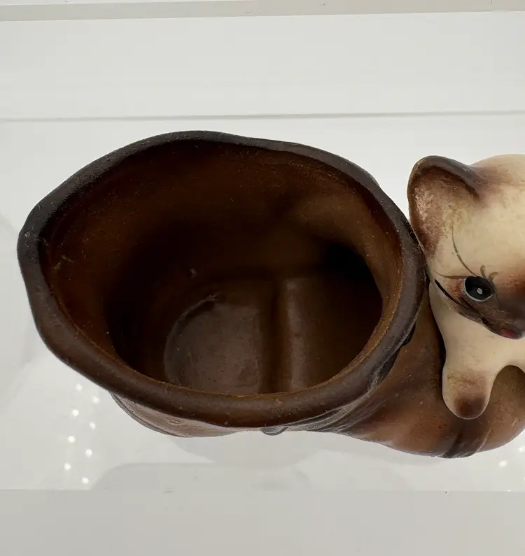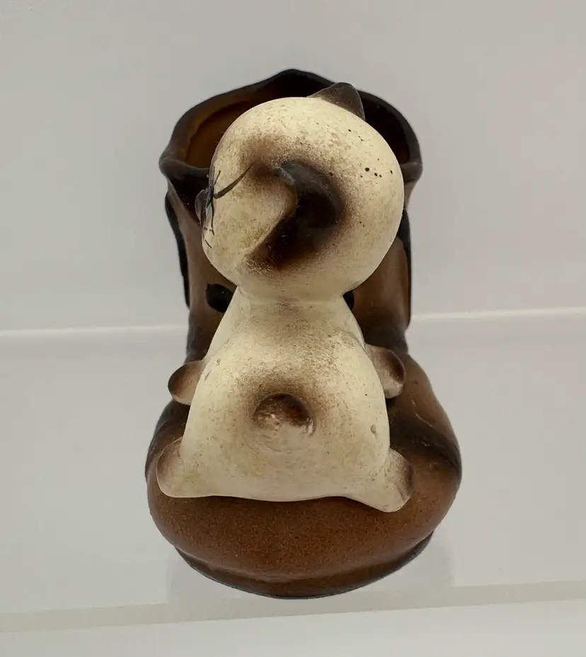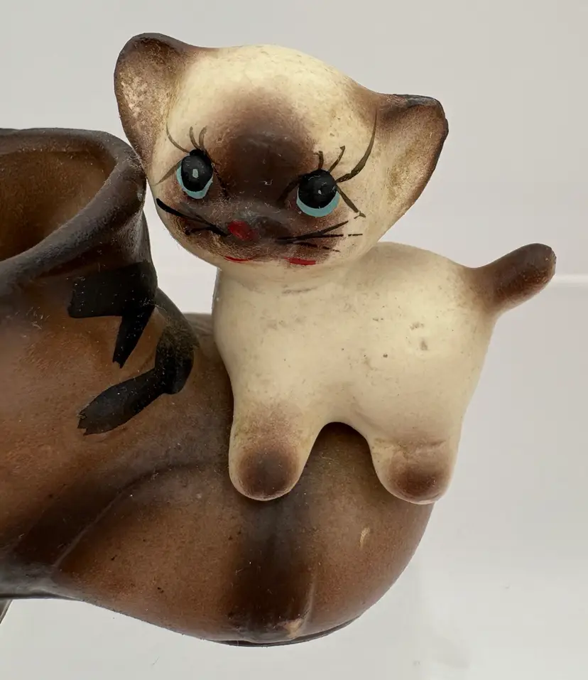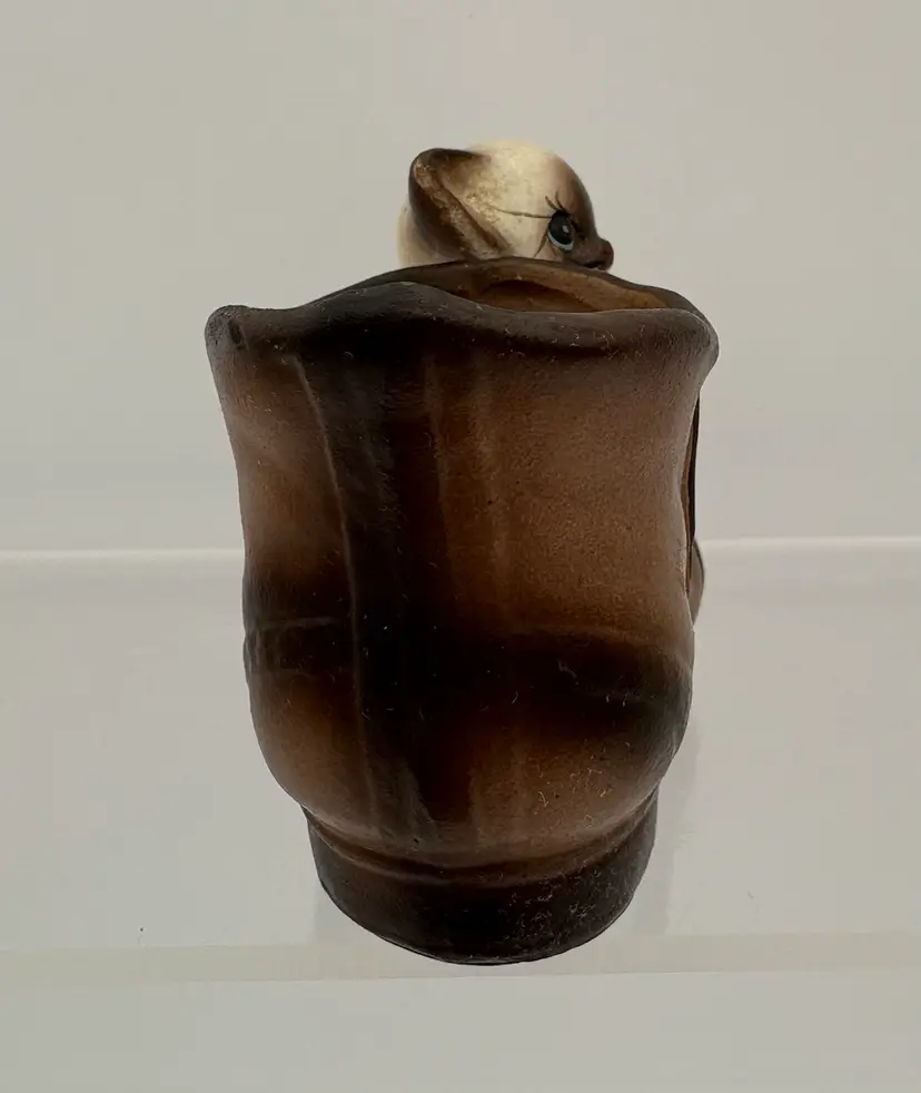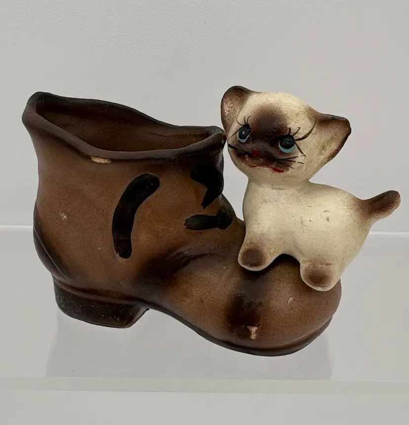 3 1/2”W x 2 1/4”H x 1 1/2”D Some rubbing on boot edges. Enesco label on bottom. Made in Japan.