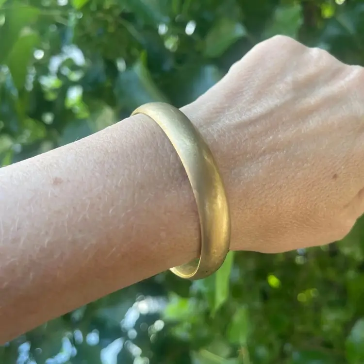 This vintage solid 14K yellow gold bangle bracelet was crafted by Engel Brothers of New York, a renowned mid-century American jeweler celebrated for their timeless, minimalist designs and impeccable craftsmanship.