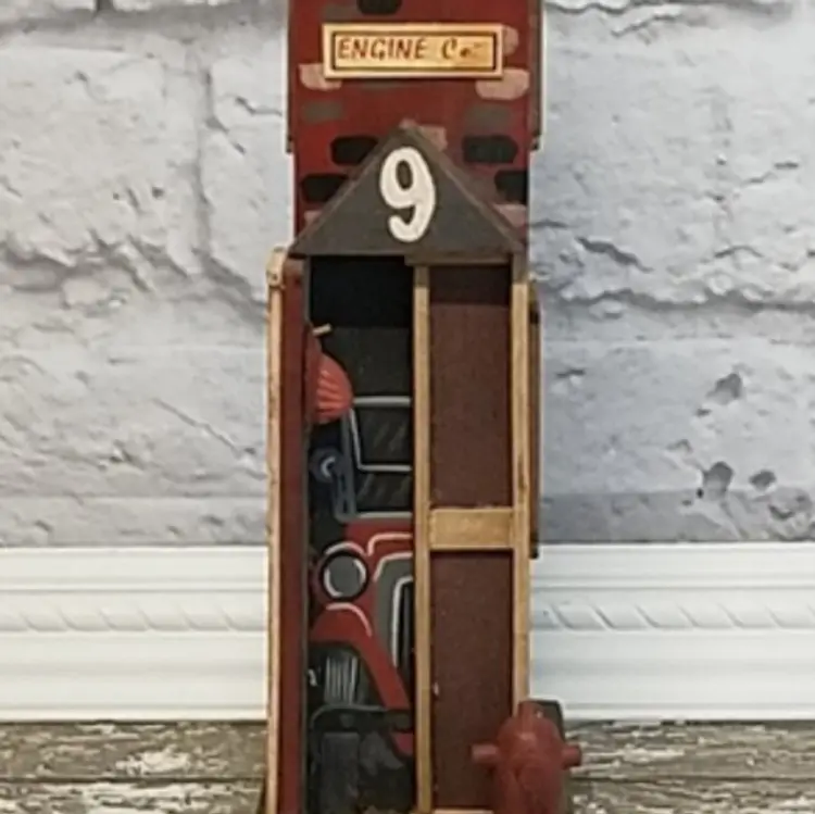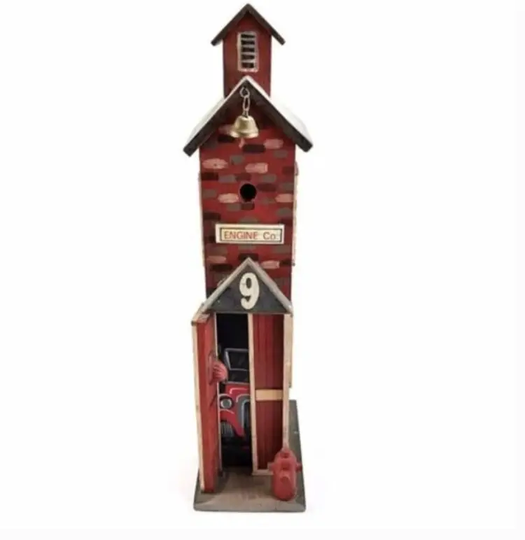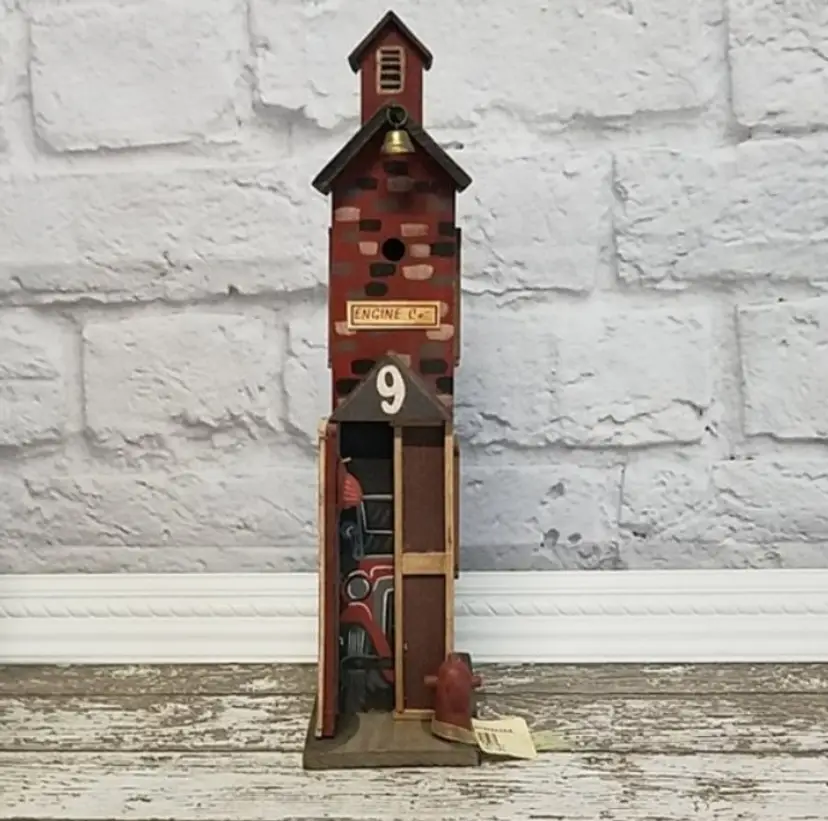 Engine Co Fire Station House Birdhouse Fireman Home Decor Wooden Collectible Bell This is NEW old Stock, in excellent condition! This is a decor birdhouse. Measures: 14" x 5 x 3 1/4"
