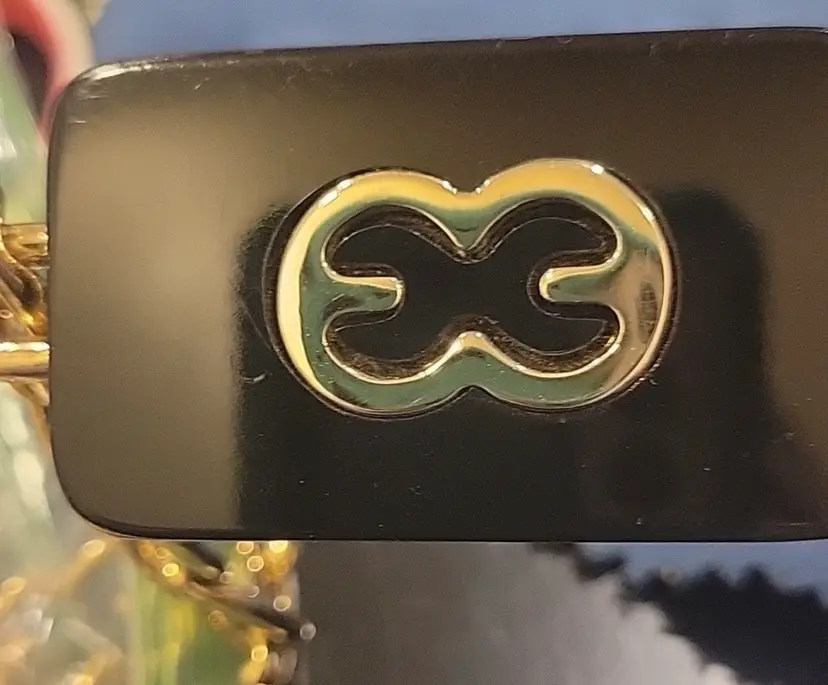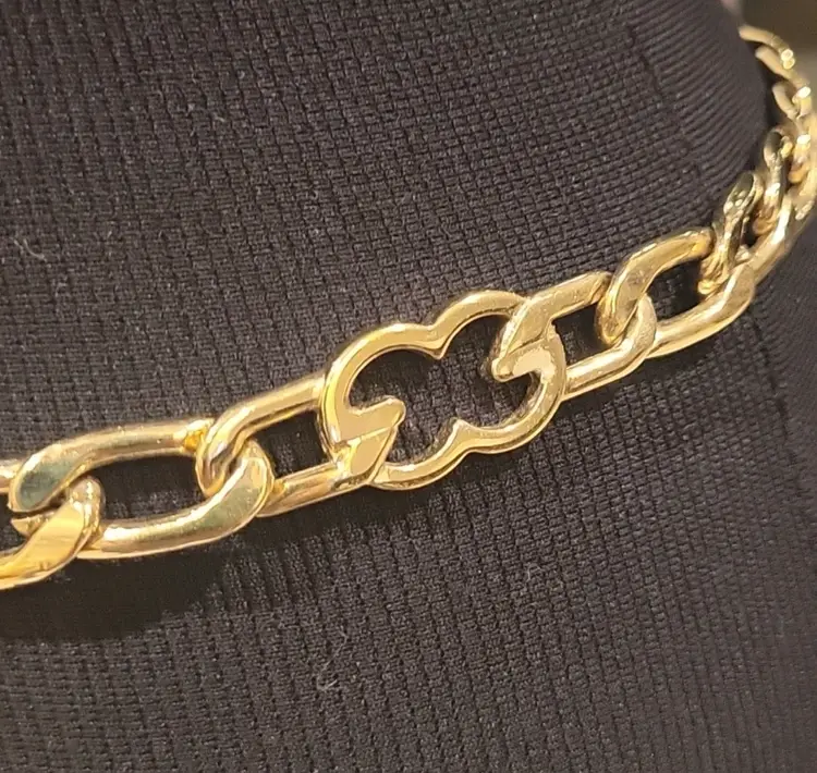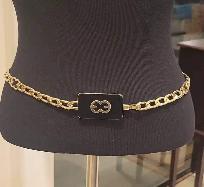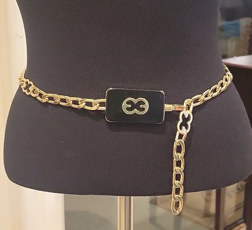 Vintage Escada Solid Gold Logo Chain with Black Buckle Hook Closure can adjust to most sizes. Minor scratches in excellent Pre-owned Condition 34" total length