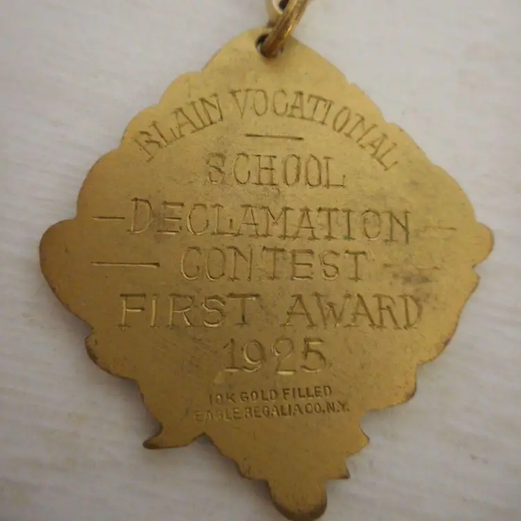 Engraved Blain Vocational School Declamation Contest First Award 1925