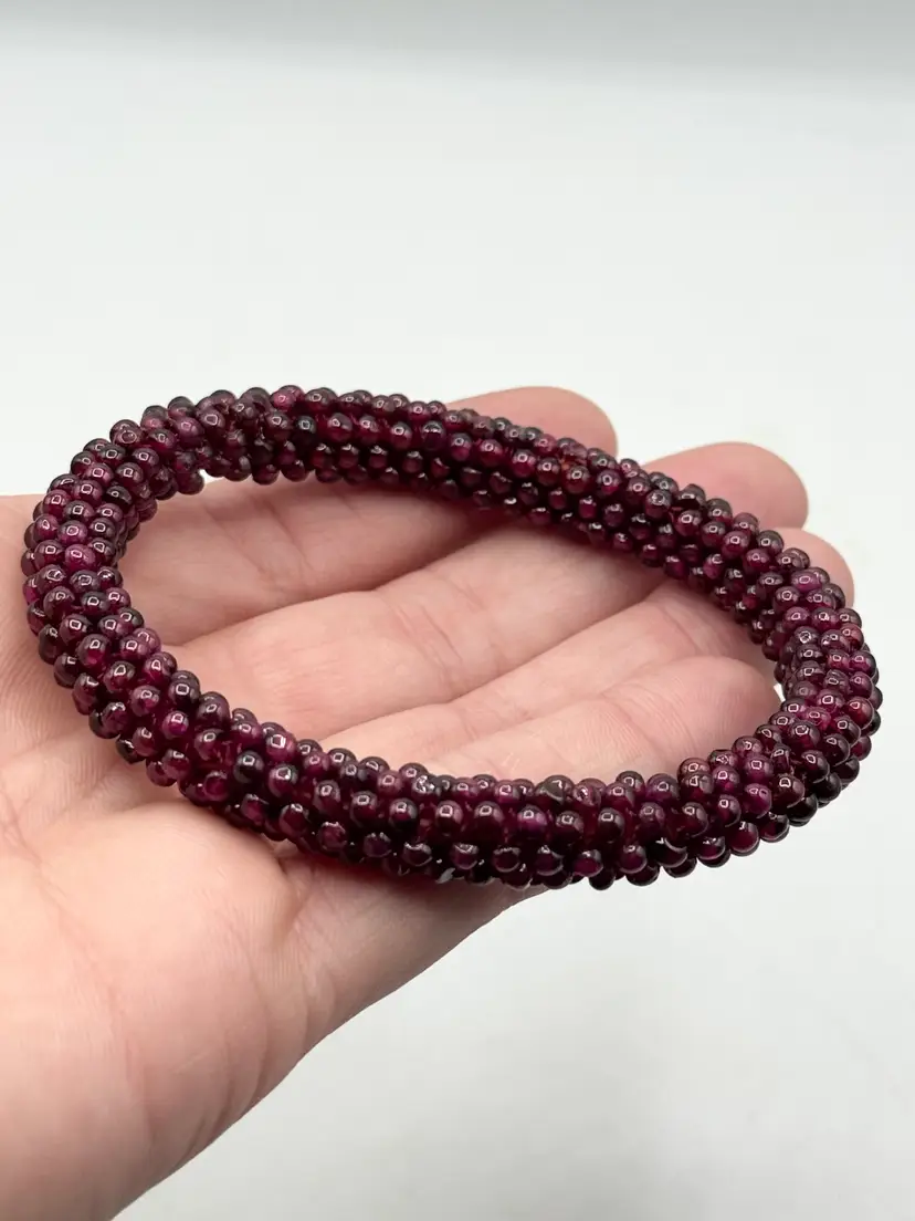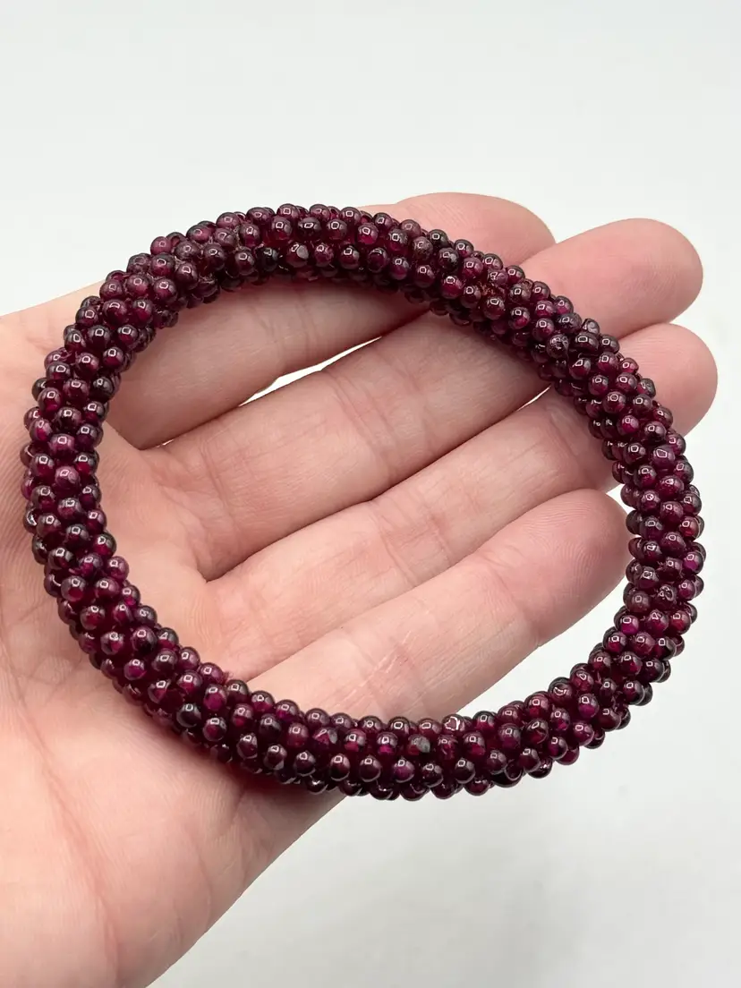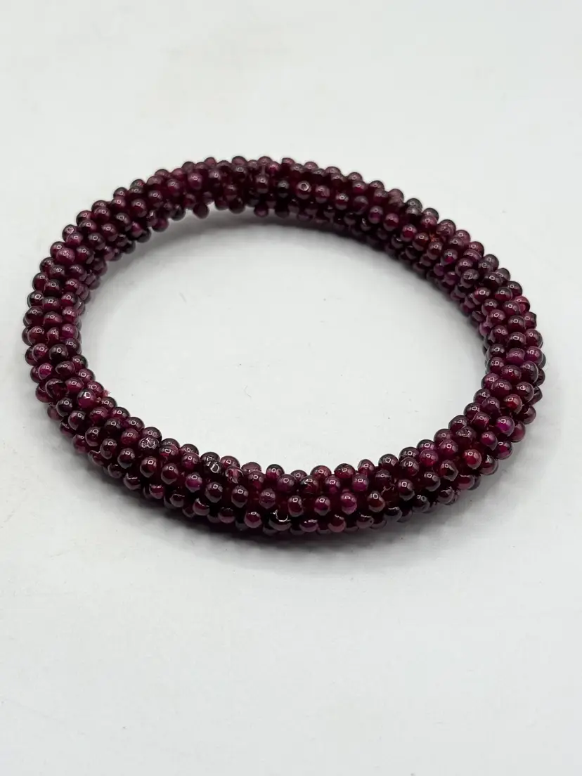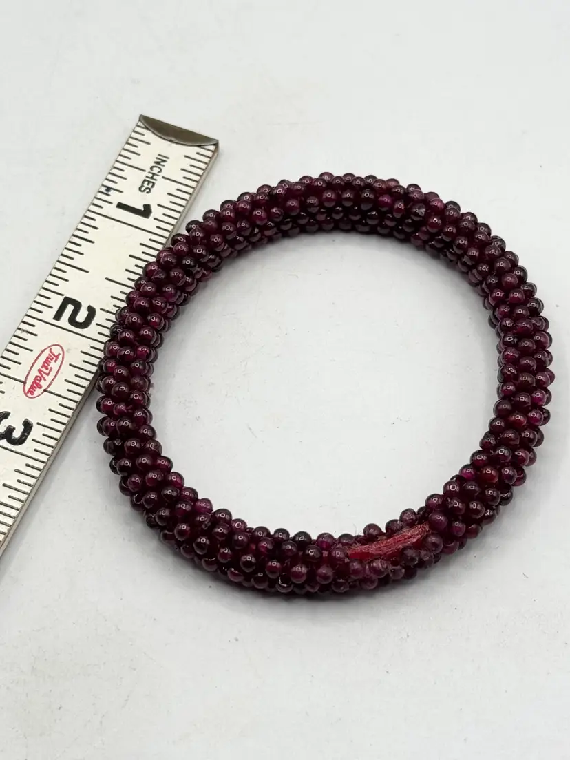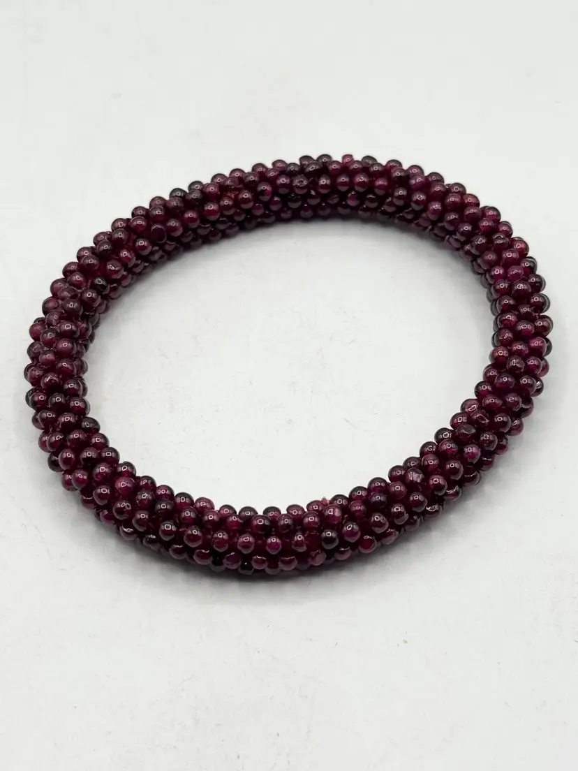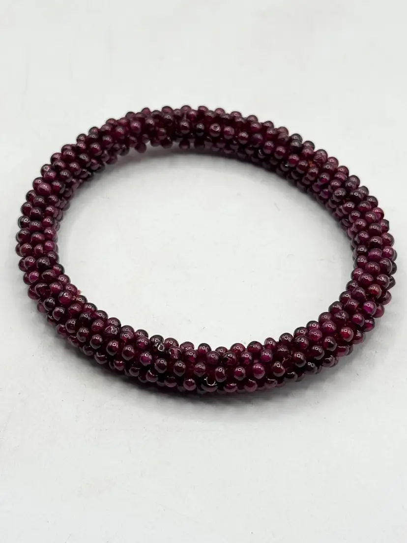 Vintage estate garnet beaded bangle bracelet. Estate beaded garnet bangle bracelet. Well made garnet bead bracelet. MN56H.