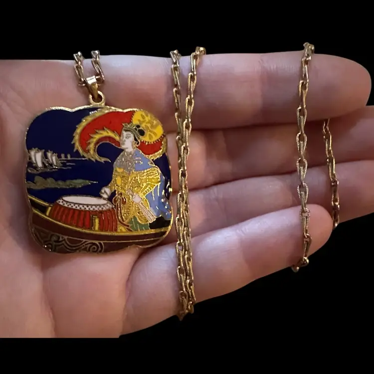 Gold-tone Chain Measures: 26” Pendant Measures: Alittle Bit Under 1.5” Barrel Clasp In Great Vintage Pre-loved Condition