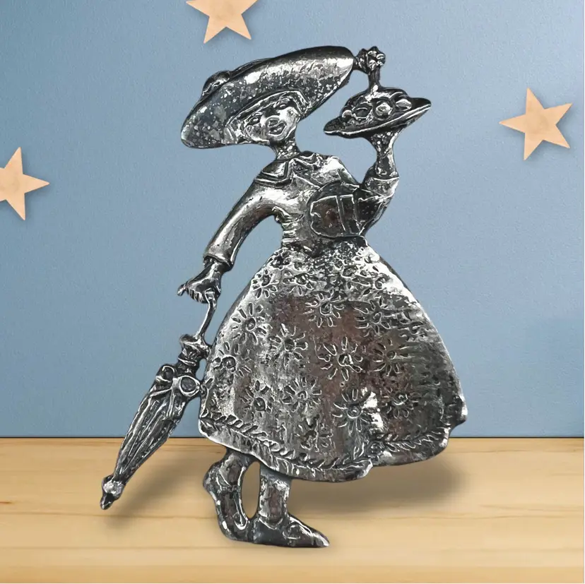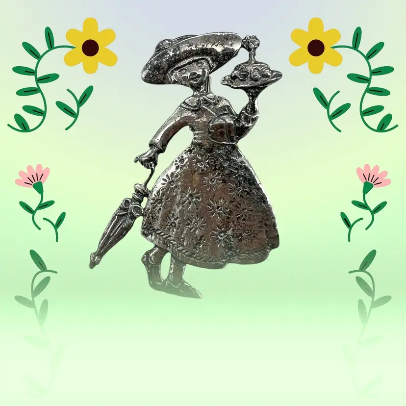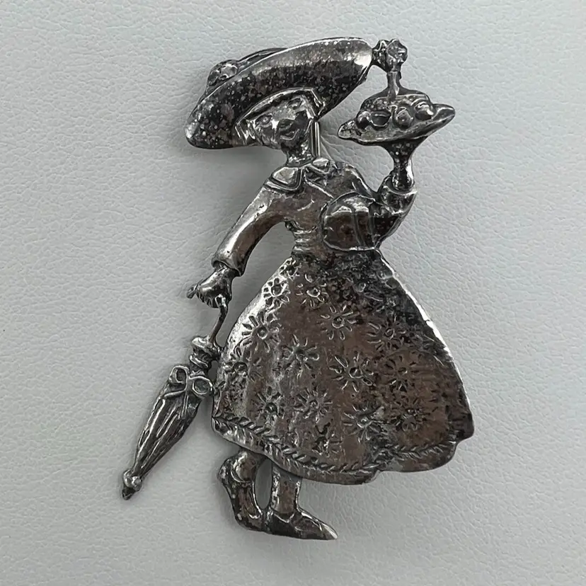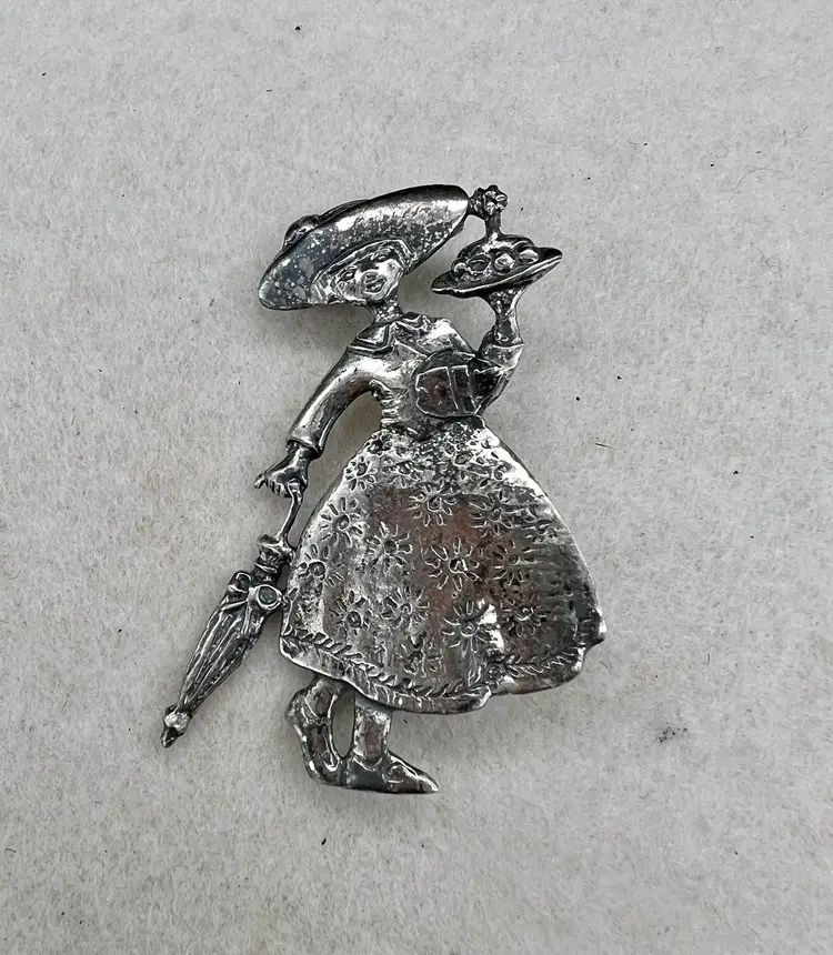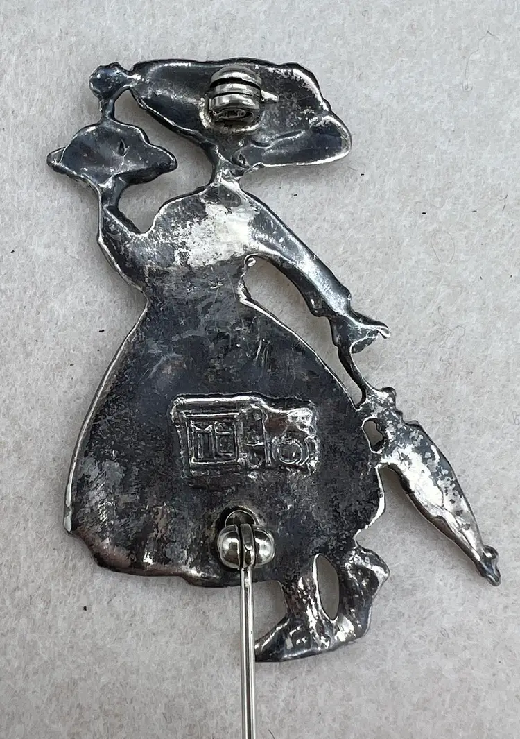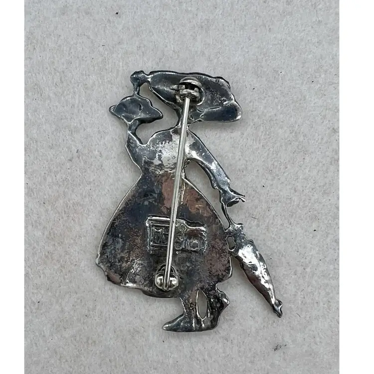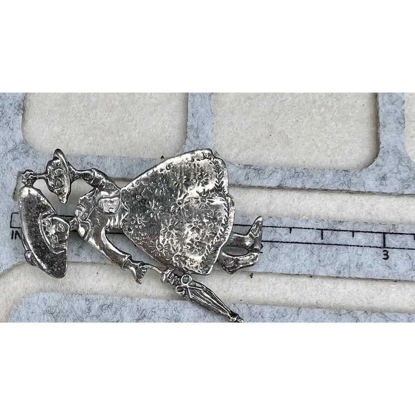 This charming brooch pin features Ann Estelle, one of Mary Engelbreit's beloved characters, in a sweet art design. Crafted from 925 sterling silver and measuring 2 inches, this vintage piece is perfect for any fan of Mary Engelbreit's whimsical art