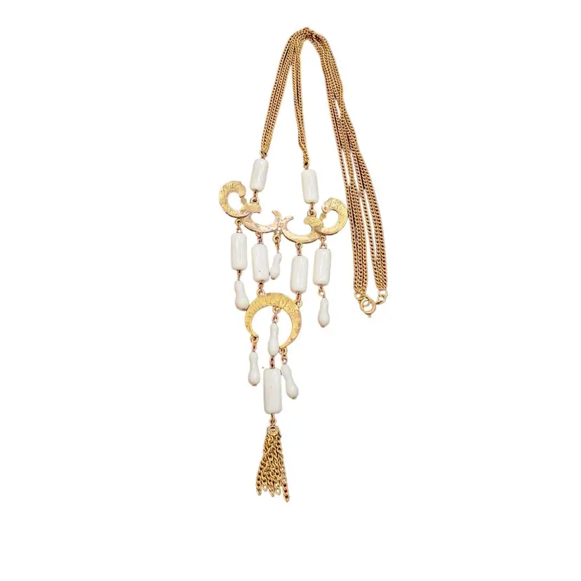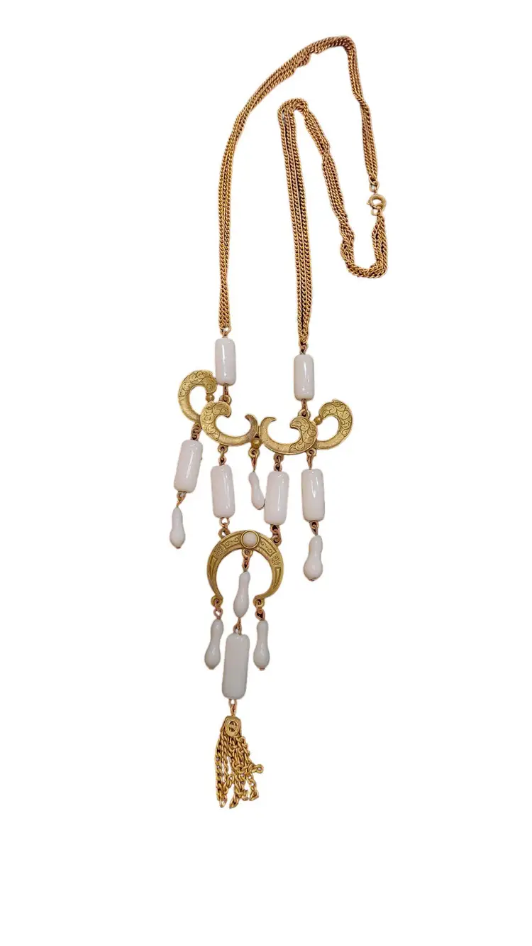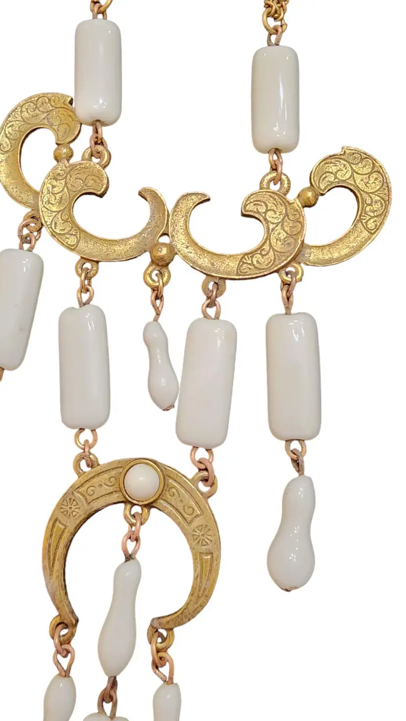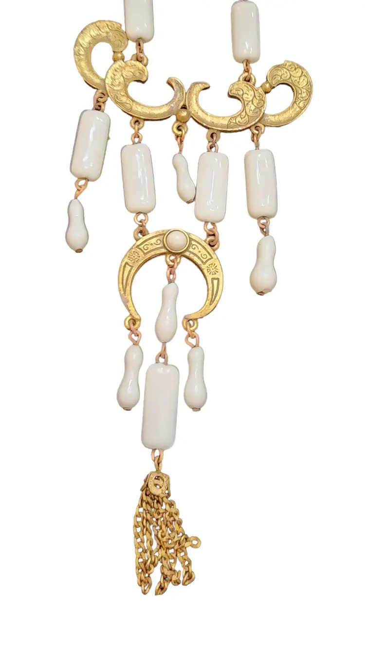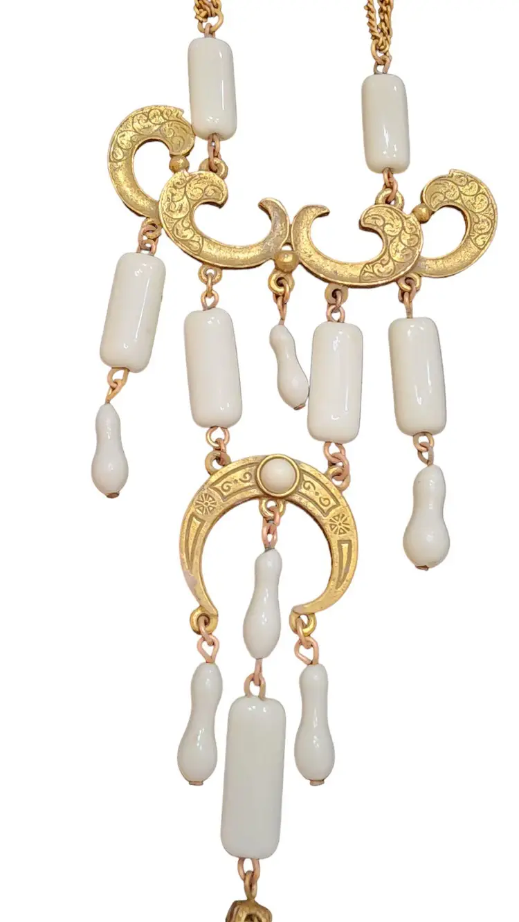 Vintage Etched Brass and Czech Glass Dangle Necklace (A2861)