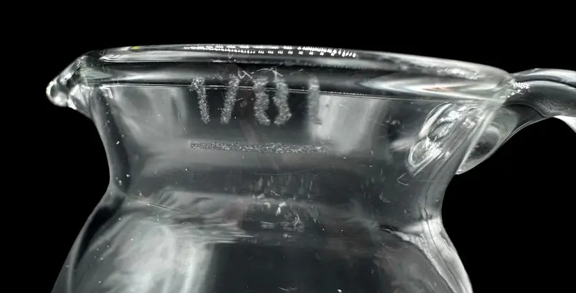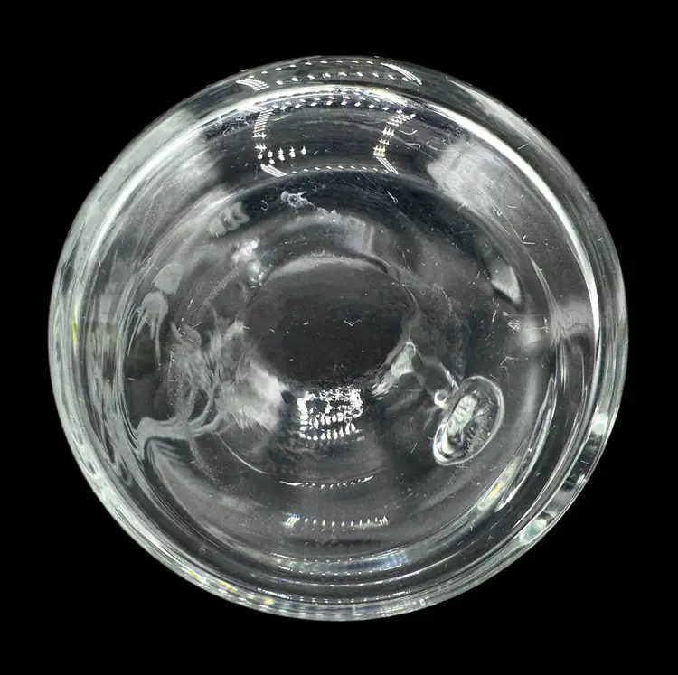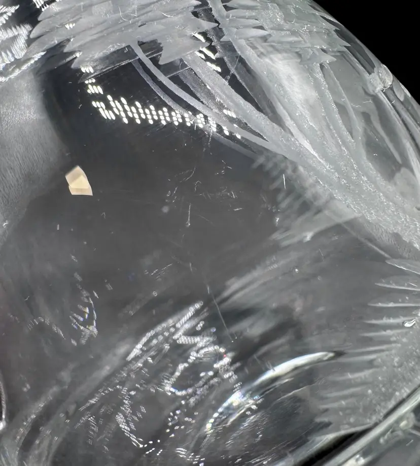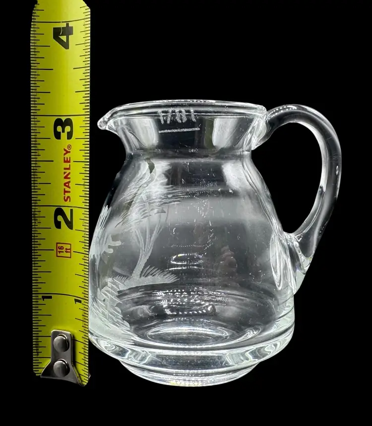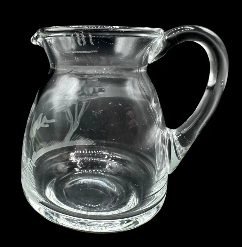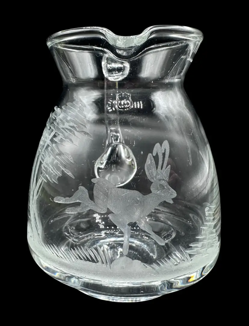 Small creamer with etched depiction of a gazelle or deer running, and a tree.