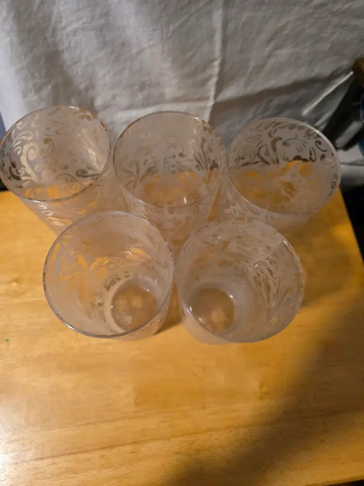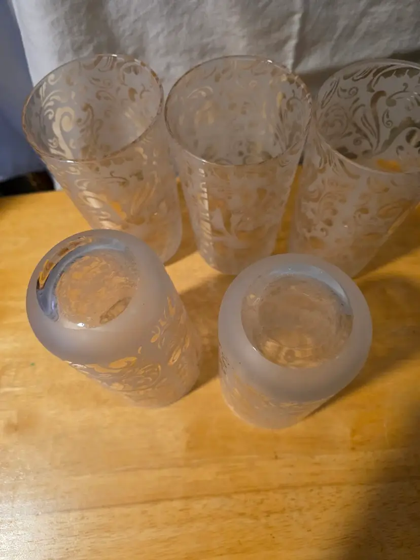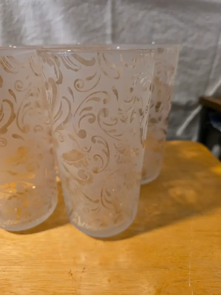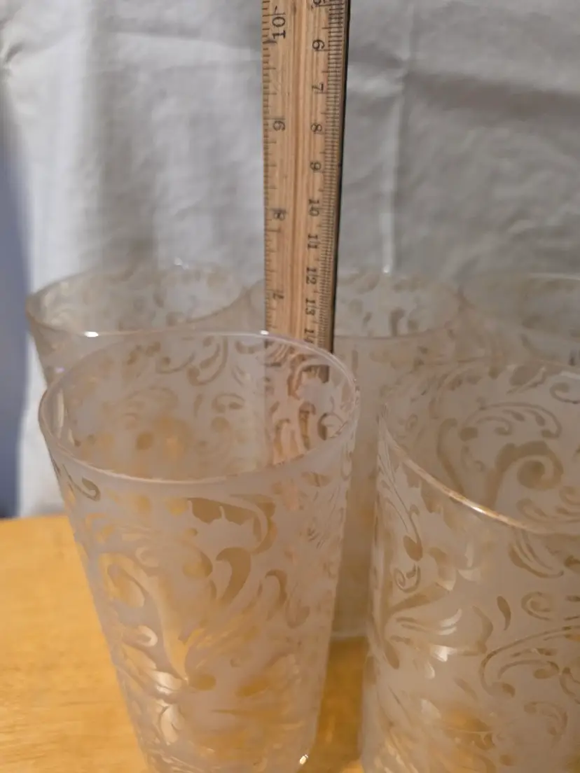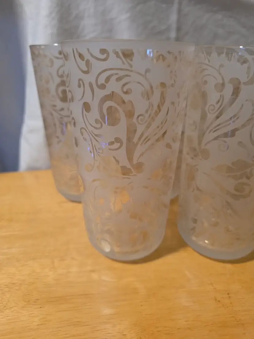 Add a touch of elegance to your table with this set of vintage etched glass tumblers. Perfect for serving your favorite beverages in style, these glasses feature a delicate floral pattern that enhances any occasion.