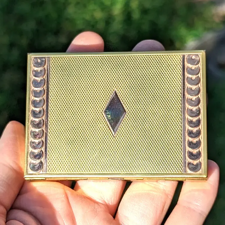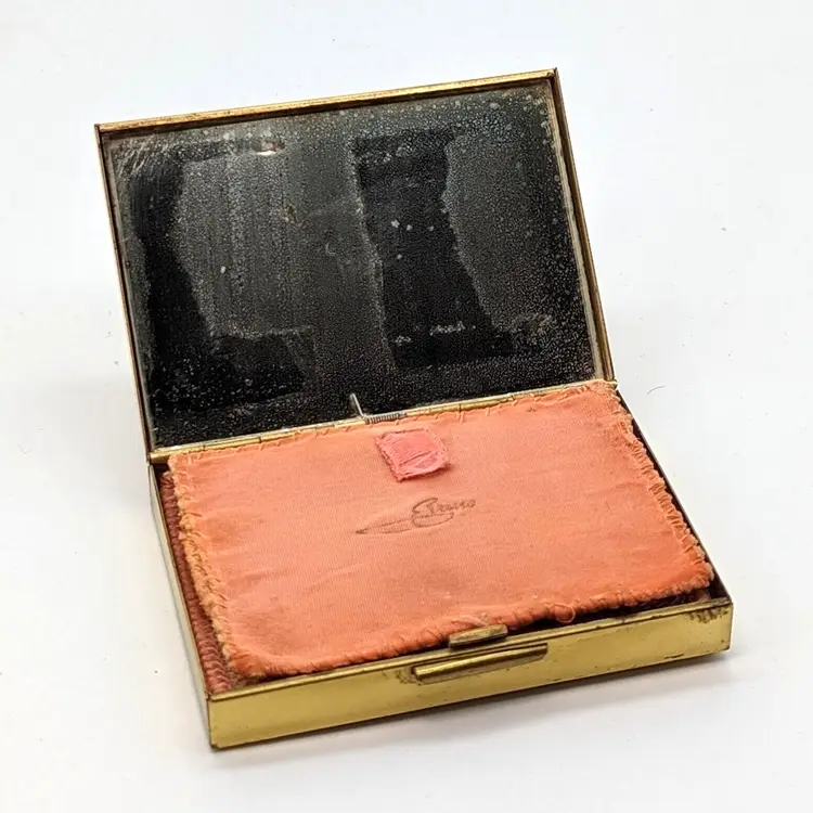 This fun compact is likely from the 50s. A cool find with all the original accessories.