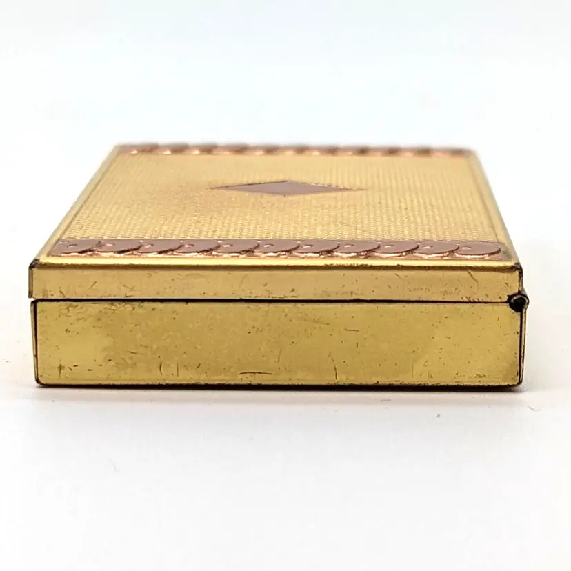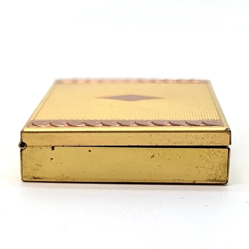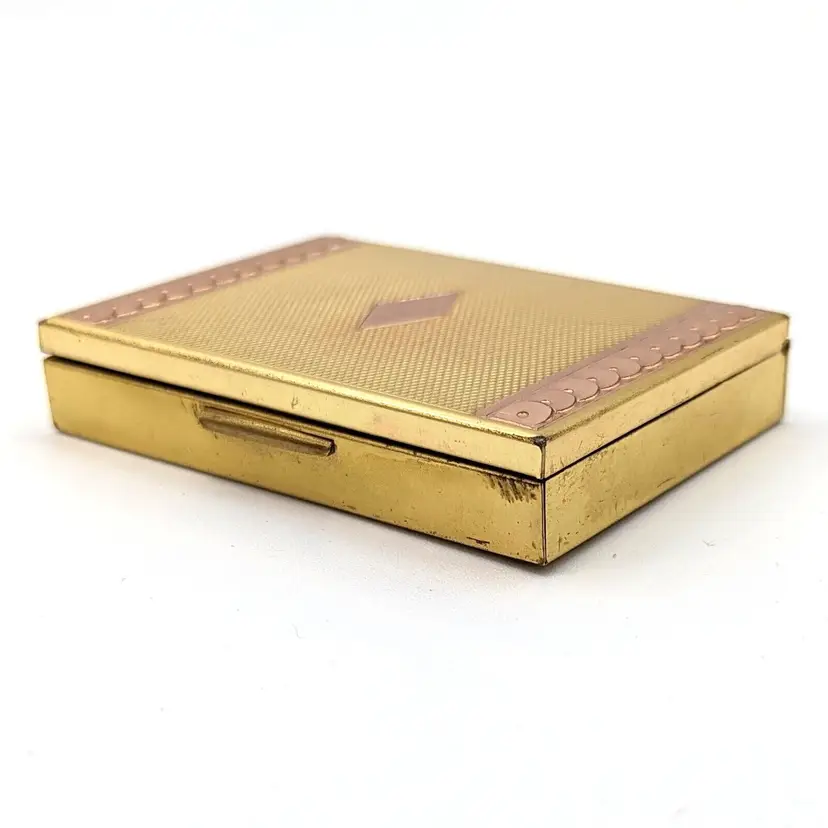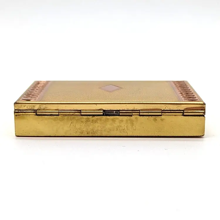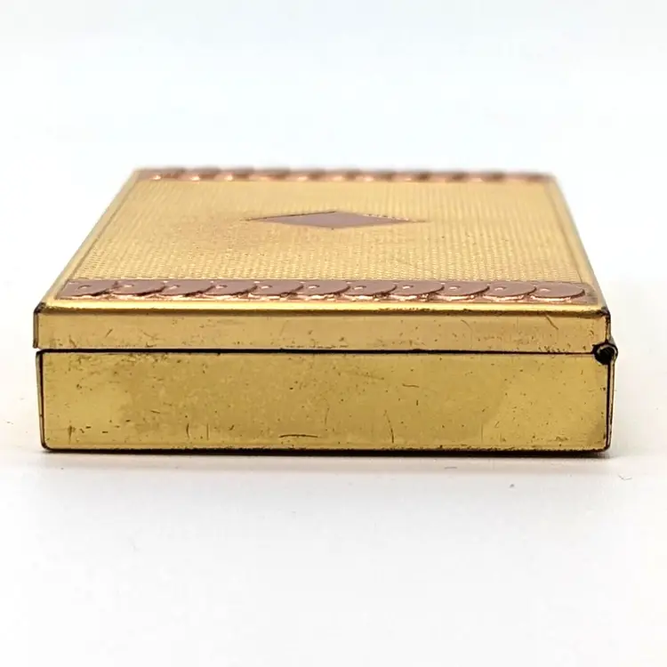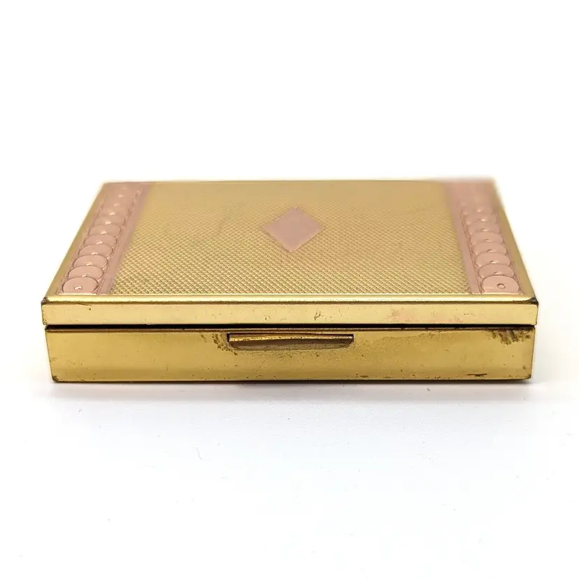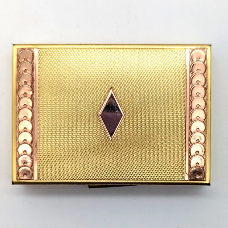 Vintage Evans Two-Tone Loose Powder Compact Yellow/Rose Gold Tone Diamond Design with Sequin Trim with Pink Puff and Mesh