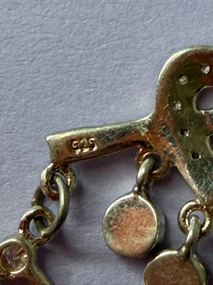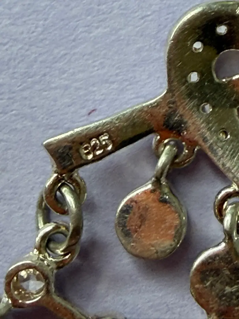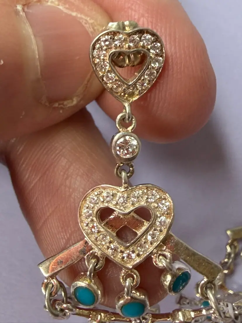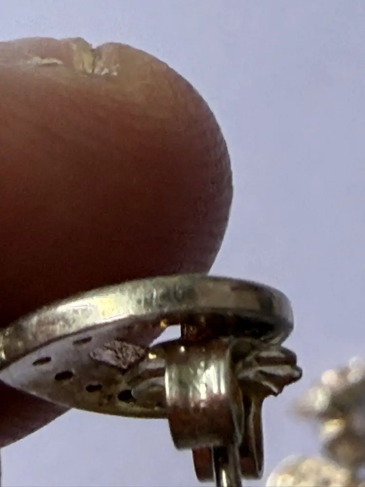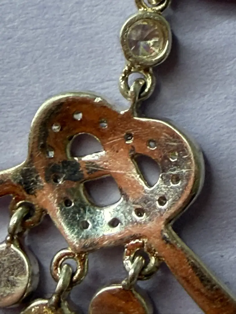 Measures a little over 2” long there are marks and scratches on them but I don’t see any missing stones