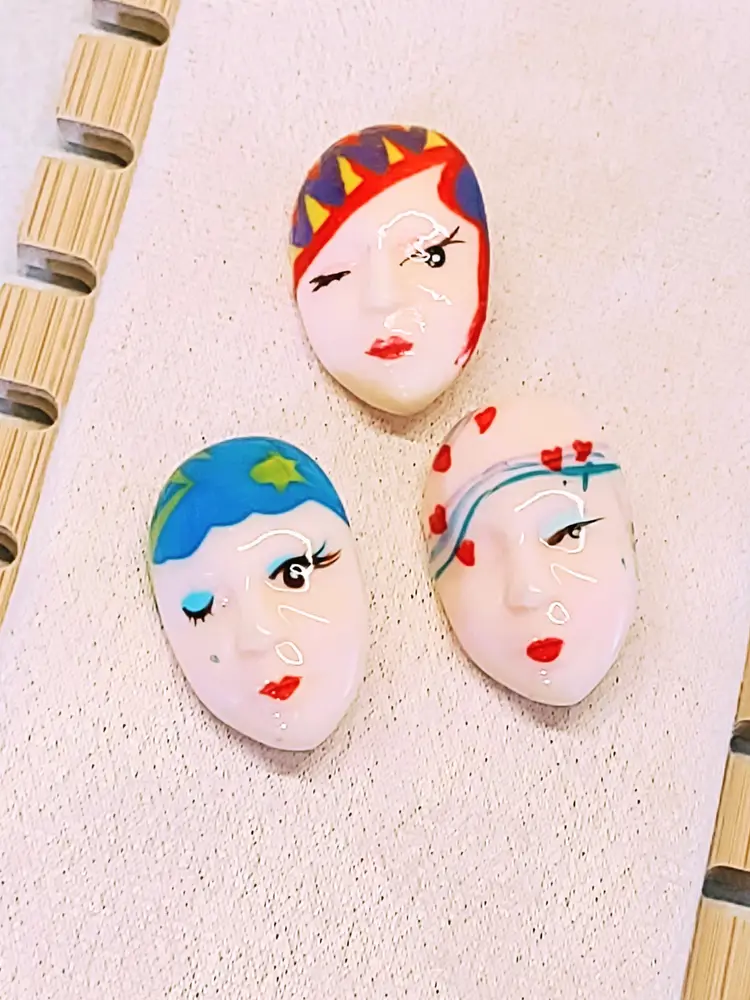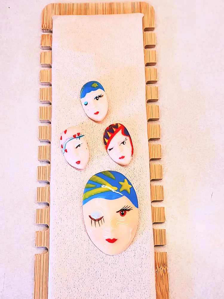 This bundle of four Vintage Face Art Deco Flapper Girl Brooch Pins features large and small face shapes, Large measuring 2.5 inches and Small measuring 1 3/8 inches respectively. Handmade and nickel-free, these retro-themed pieces are crafted with steel metal pins and acrylic material in a multicolor design. Perfect for occasions like Mother's Day, Christmas, and birthdays, these unique brooch pins add a touch of vintage flair to any outfit, making them a stylish and eye-catching accessory for any jewelry collection.