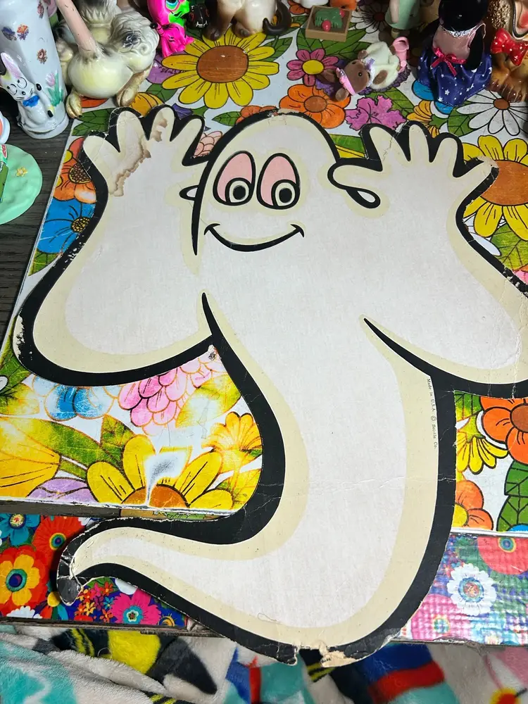 For sale! Vintage Faded Glow in the Dark Biestle Ghost Die Cut 1980s. Some holes and bending. As is. 14 x 12