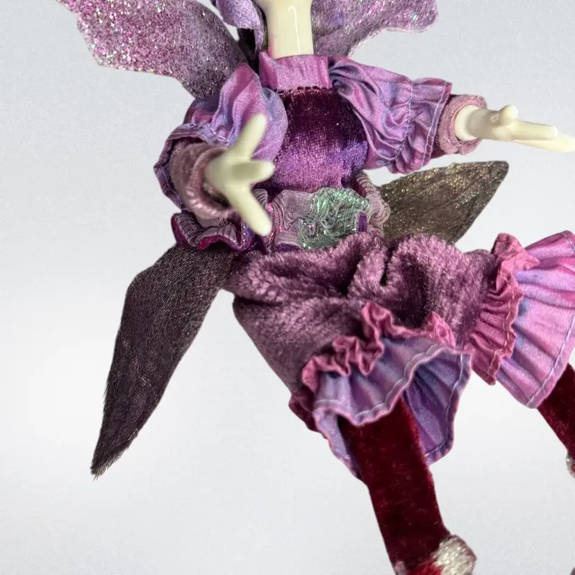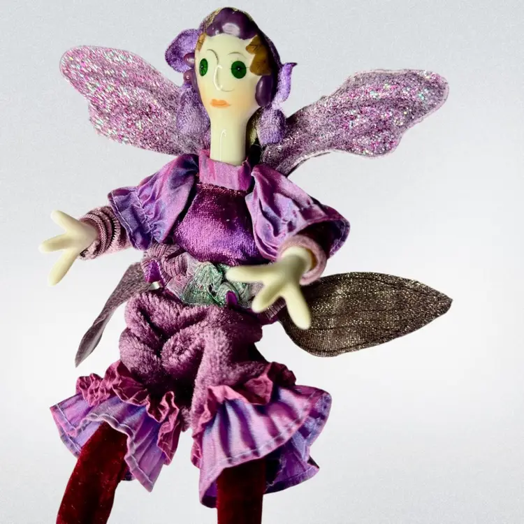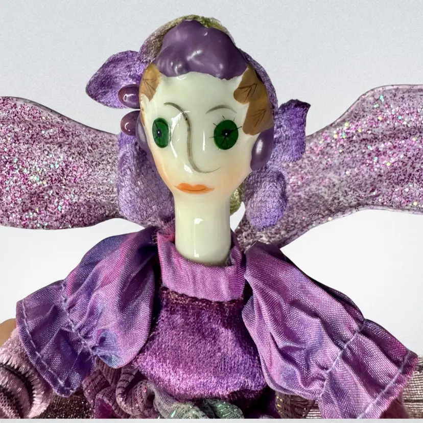 She is a beautiful fairy that could add a touch of magic to any collection or decor. Brown painted hair and green eyes are beautiful on the porcelain finish. Measures 8 1/2" tall and she is in great condition with only a little wear on her silk fairy shoes. She was made between 1990-1999 and very enchanting and a hard to find fairy doll.