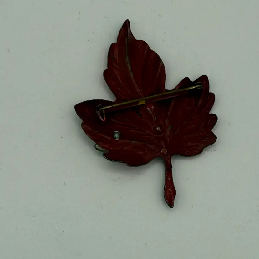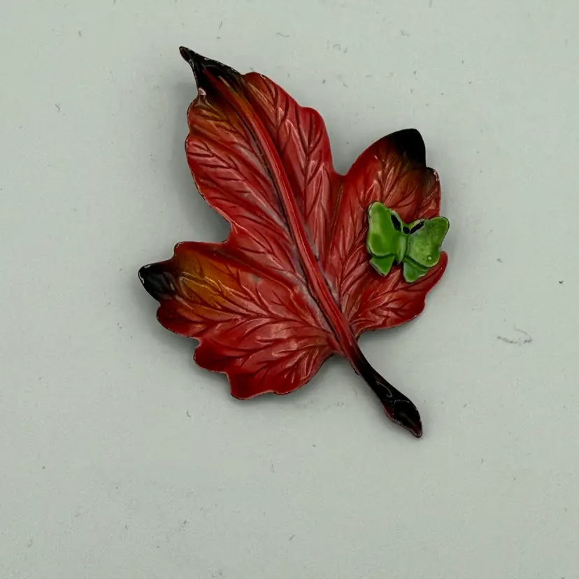 Vintage Fall Leaf With Butterfly Pin. 3" H X 2" W.