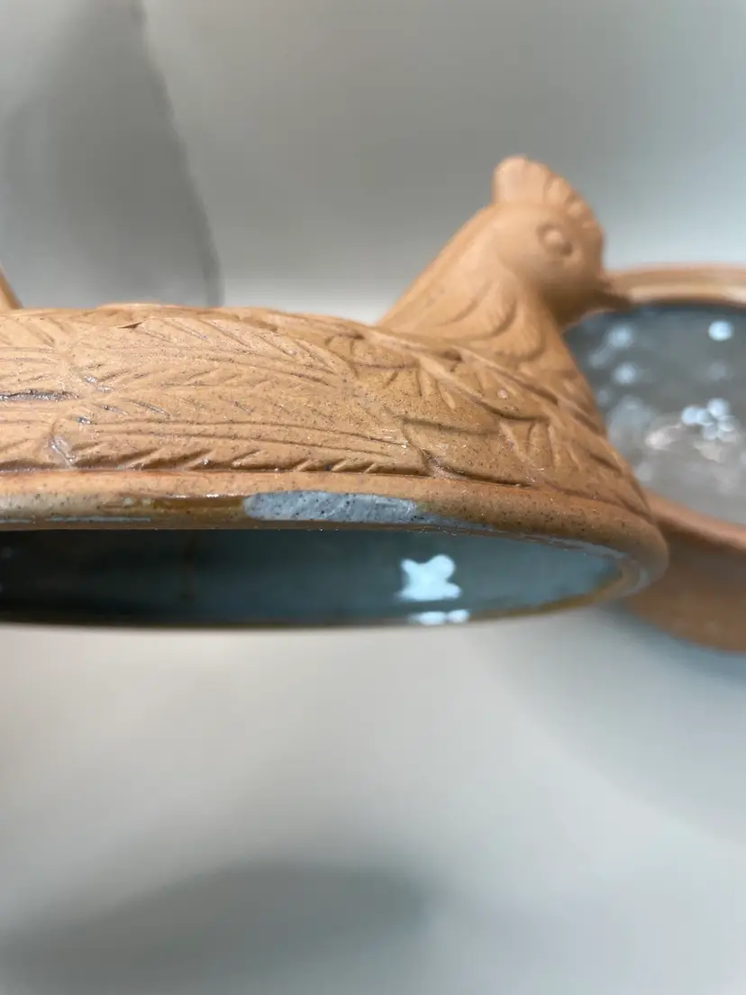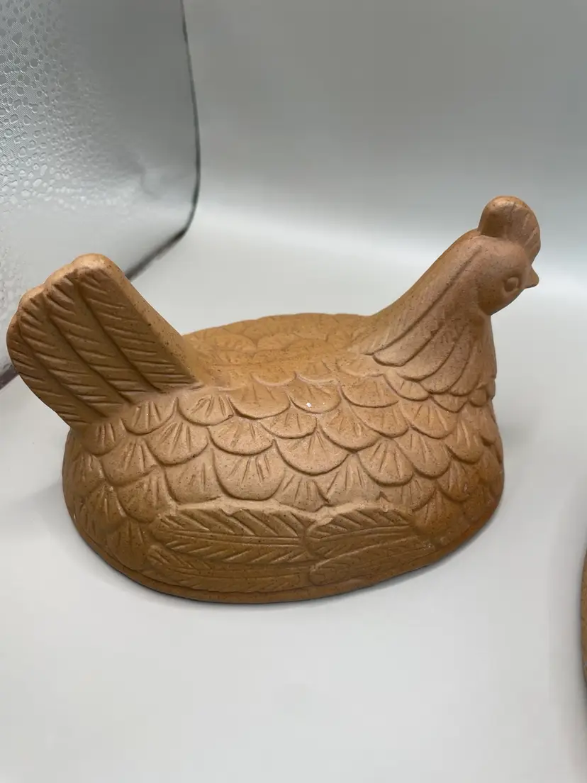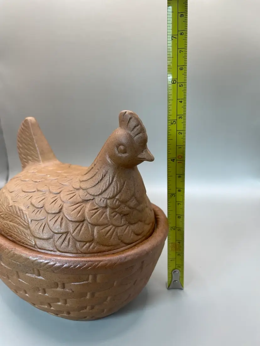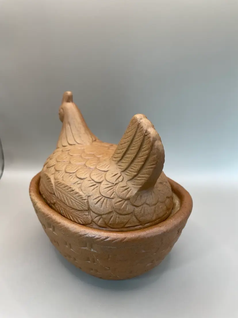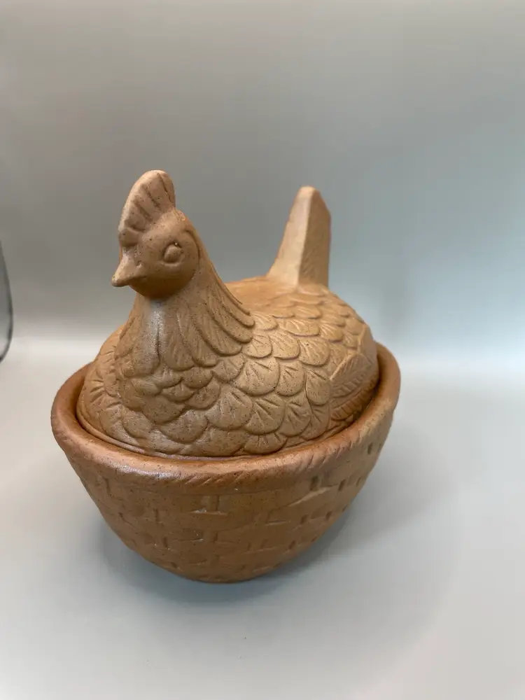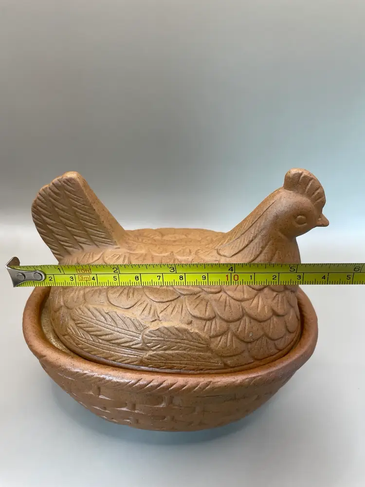Vintage Farmhouse Rustic Terracotta Hen on Nest/Basket. See picture for condition